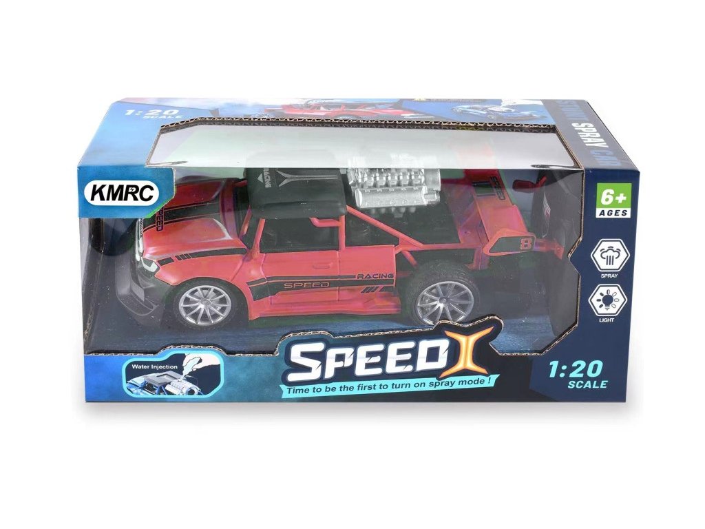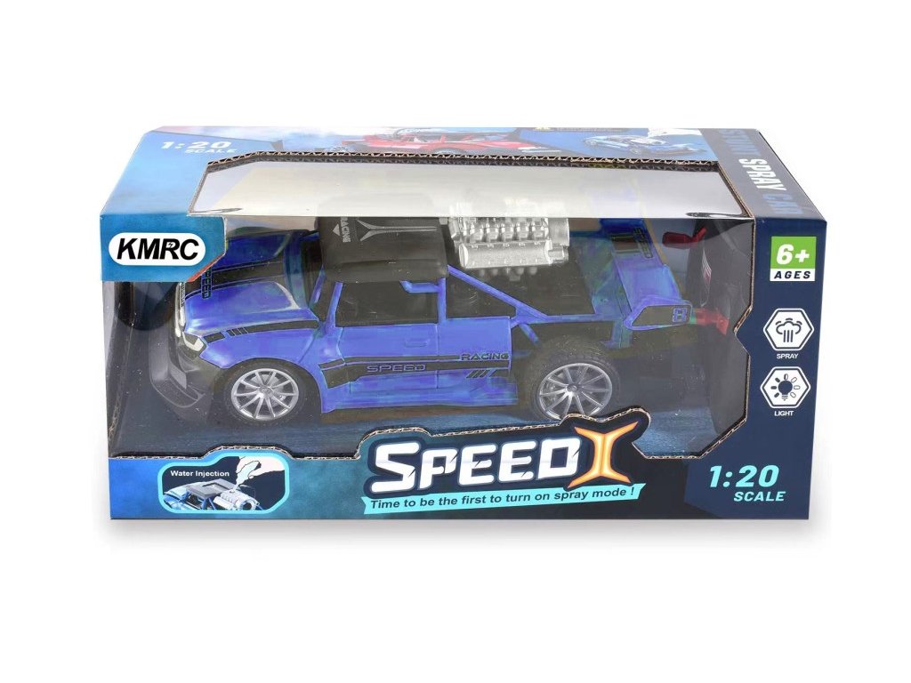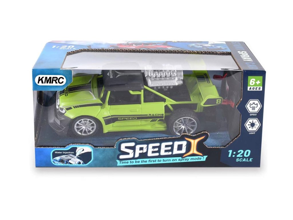 Terénní auto v měřítku 1:20. Auto jezdí vpřed, vzad a zatáčí, svítí mu světla, a navíc se mu při jízdě kouří z výfuku! Tužkové baterie pro provoz auta a ovladače nejsou součástí balení. V nabídce modrá, zelená a červená barva. Maximální rychlost 2,2 km/h. Frekvence 40MHz, frekvenční pásmo 40,680MHZ, maximální radiofrekvenční výkon 9,9mW, dosah dálkového ovládání 13m.