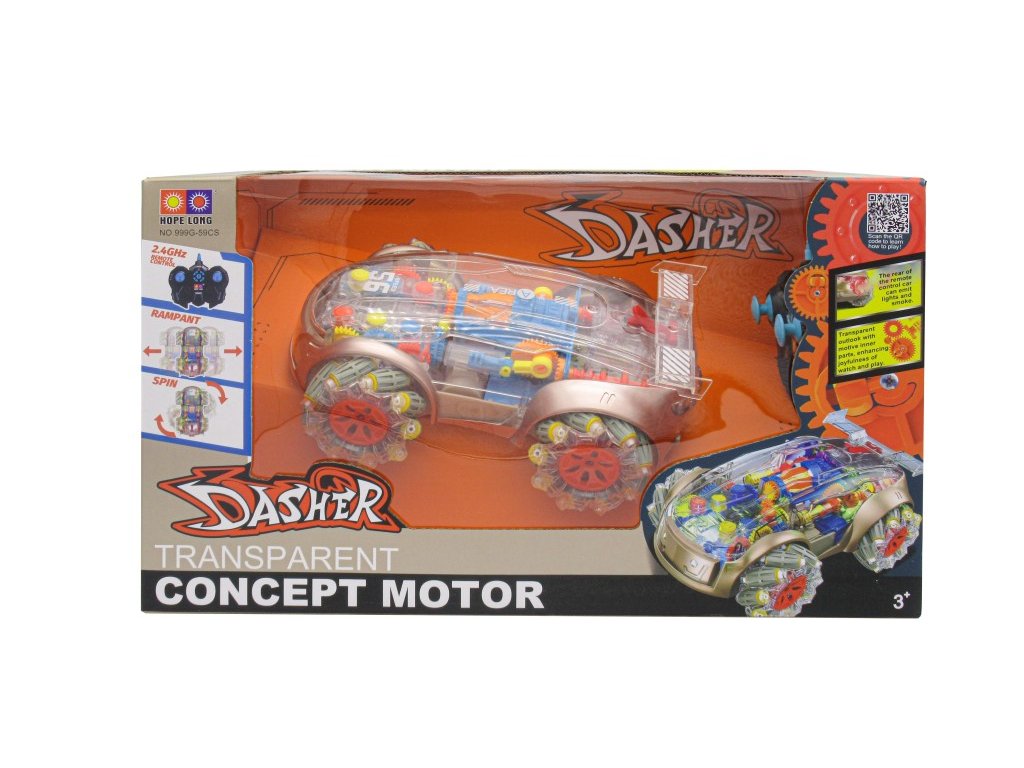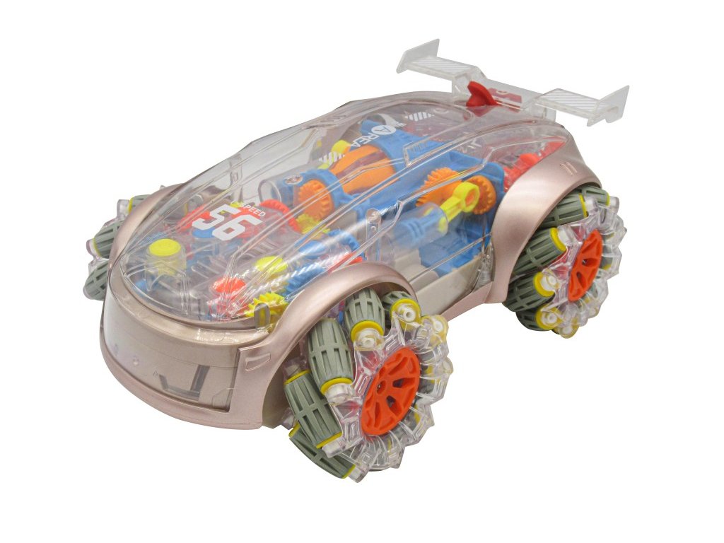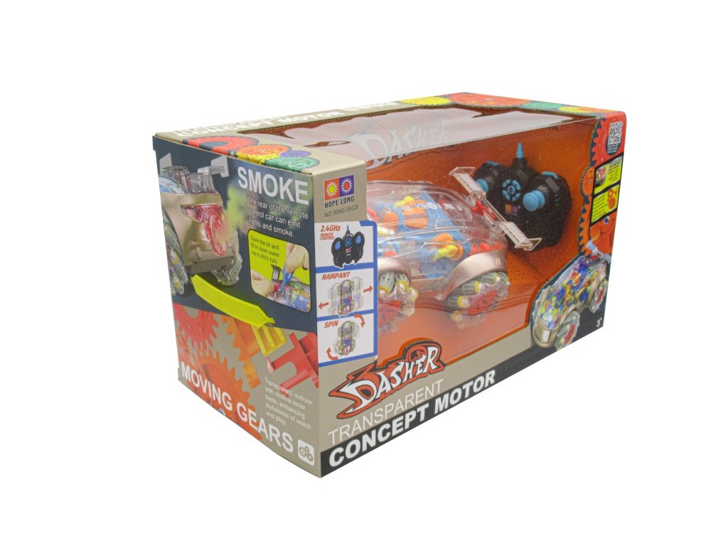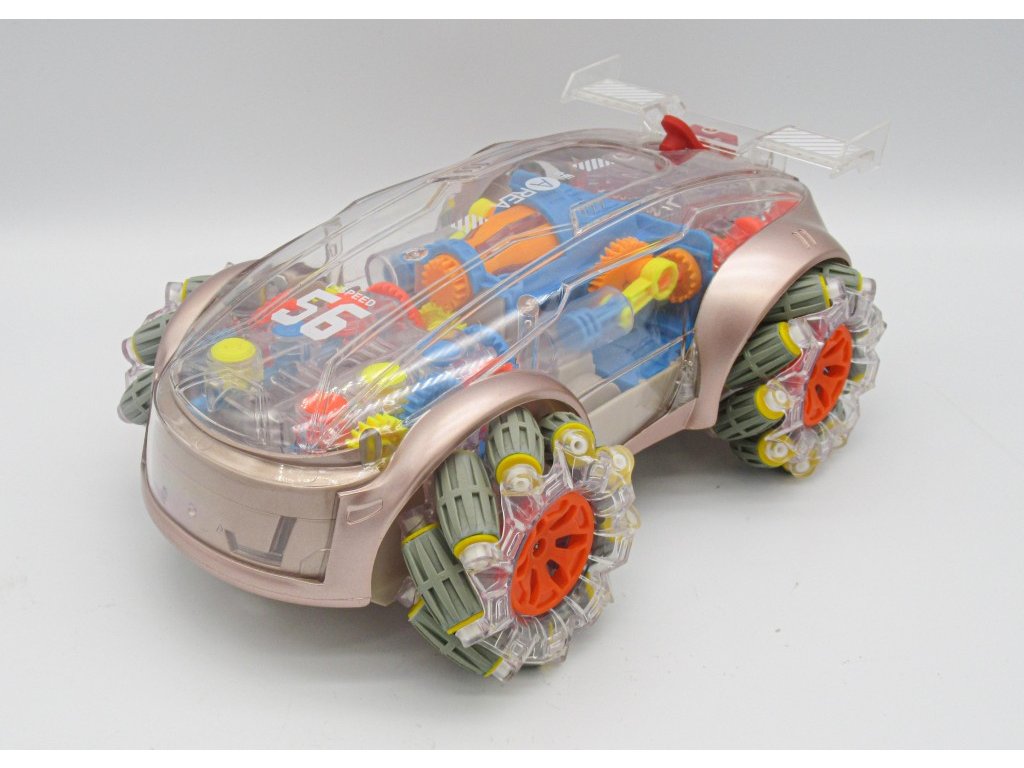Funkce a vlastnosti: Světelné a zvukové efekty pro maximální zábavu Transparentní vzhled – sleduj vnitřní mechanismus v pohybu Kouřový efekt – naplň zadní část auta vodou a sleduj kouř Multisměrný pohyb – dopředu, dozadu, do stran i boční drift Tlačítko pro ukázku – podrž po dobu 3 sekund a aktivuj kouřový efekt Maximální rychlost: 6 km/h
