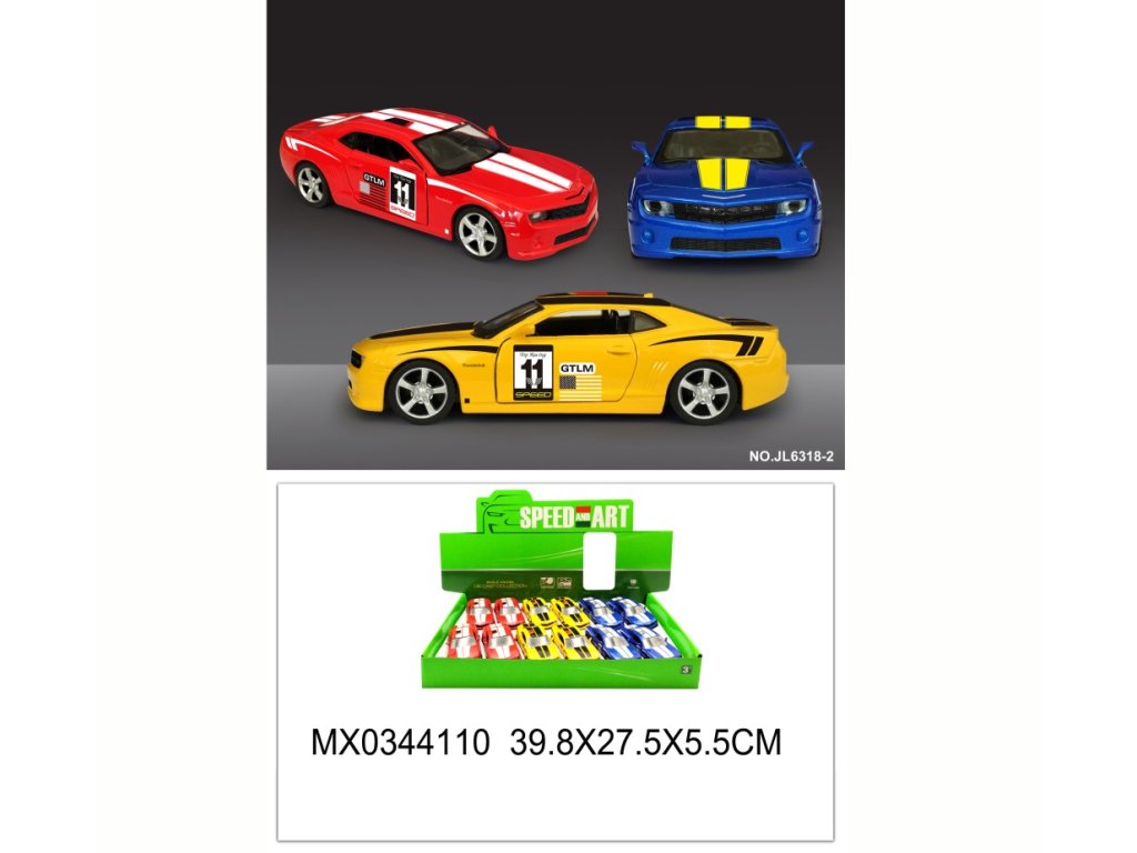 Kovový model sportovního auta ve 3 designech, kterému lze otevírat dveře. Funkce pull back – natáhni a jeď.