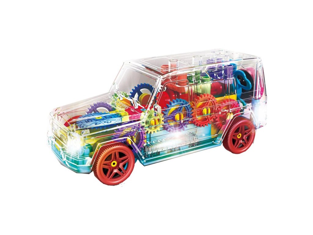 Transparentní barva. Světelný a zvukový efekt. Odolná a průhledná skořepina. Viditelná převodová struktura.