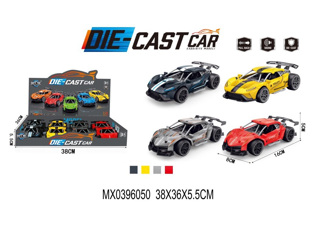 Kovový model závodního auta s funkcí pull back – natáhni a jeď.