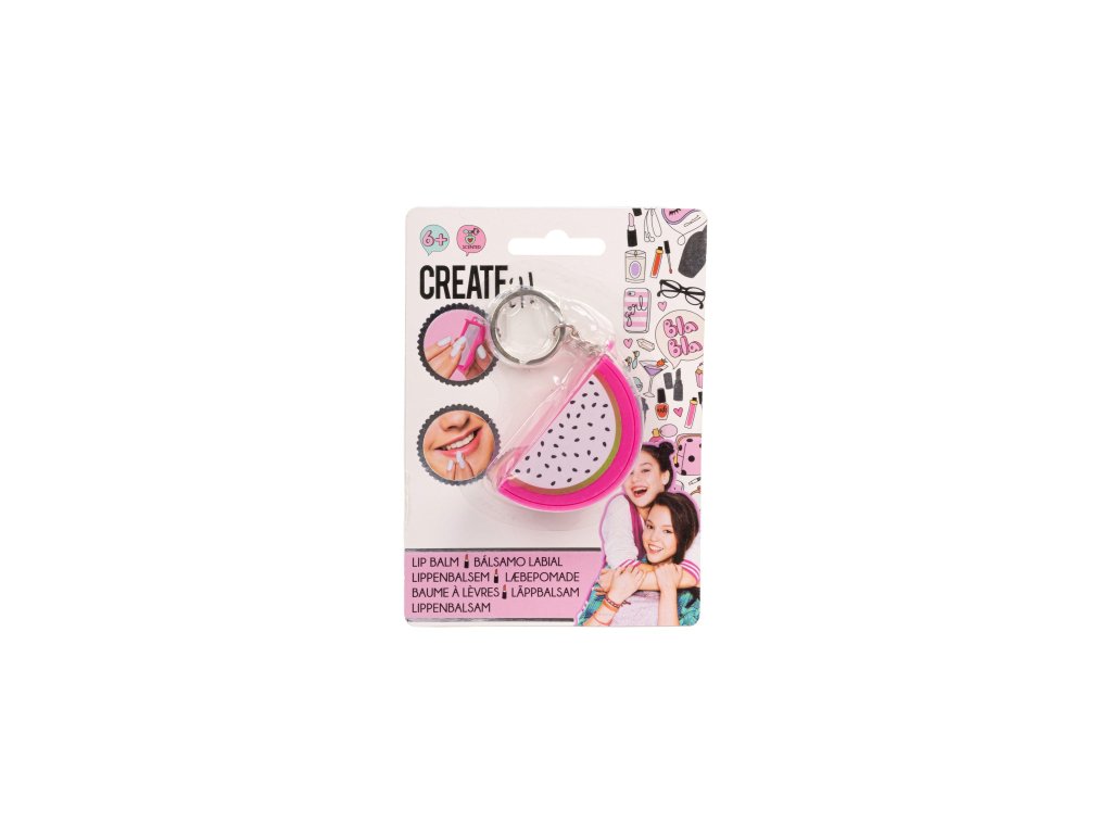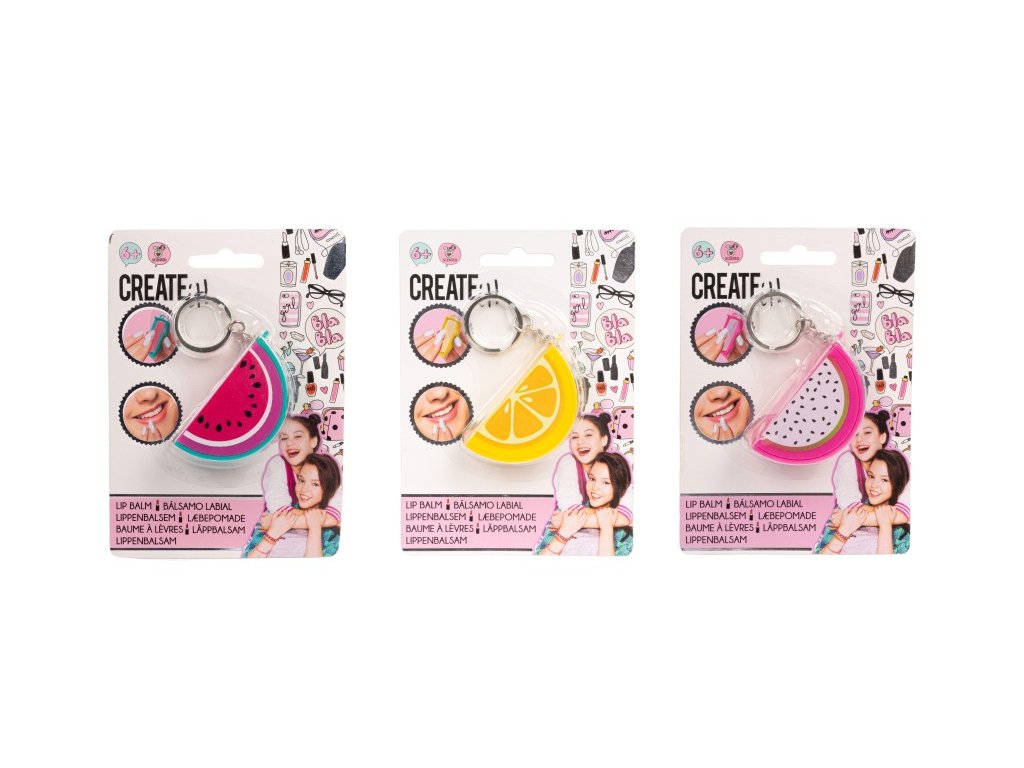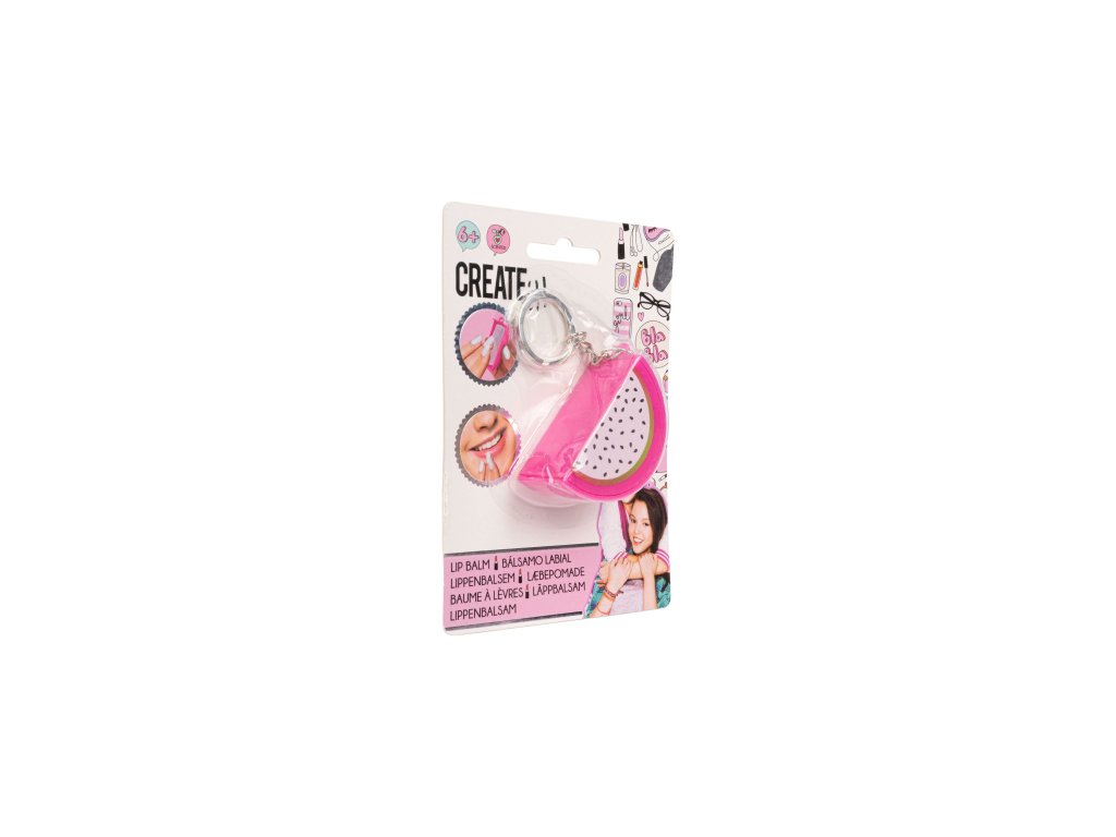 Balzám na rty přívěsek ve tvaru ovoce. Balzám na rty je ve třech různých provedeních – vodní melou, citron a dragon fruit. Dermatologicky testováno v EU, zdravotně nezávadné.