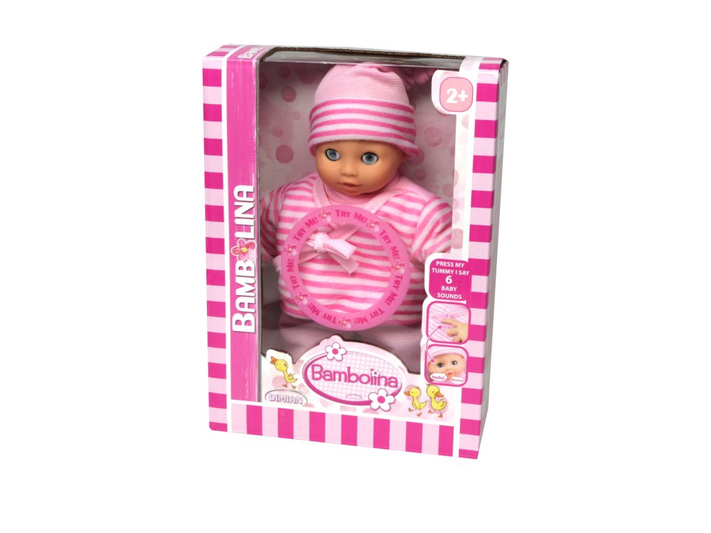 Bambolina je roztomilá panenka o velikosti 20 cm, ideální pro malé děti, které si chtějí hrát na maminku a starat se o svou panenku. Panenka je vybavena 6 zvuky, které ji činí interaktivní a zábavnou. Děti si tak mohou užívat různé situace a scénáře, při kterých panenka vydává zvuky, které ji přivedou k životu. Balení obsahuje assort dvou stylů, takže si můžete vybrat mezi dvěma různými variantami. Bambolina je perfektní společník pro každodenní hru a rozvoj kreativity.