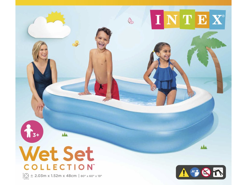 Nafukovací bazén ve tvaru obdelníku o velikosti 203 × 152 × 48 cm. Vhodný pro využití na terasách a balkonech. Vodní kapacita 540 litrů.