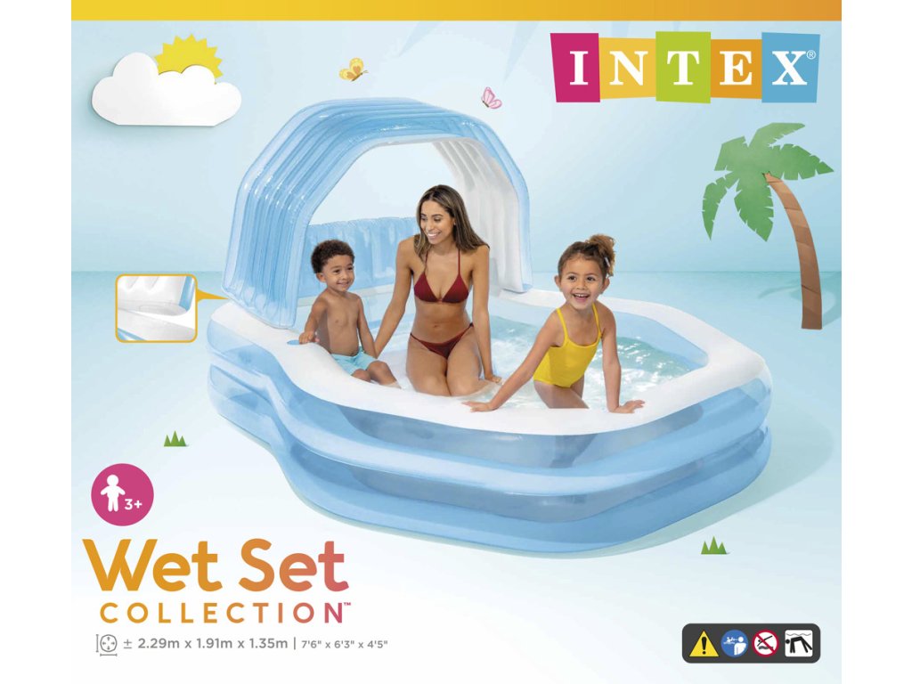 Rodinný nafukovací bazének o objemu 530l vody, ve kterém užijete v horkých letních dnech spoustu zábavy a příjemného osvěžení. Bazén má vypouštěcí ventil Velikost bazénu přibližně 229×191×135cm. Vyrobeno z testovaného masivního vinylu. Součástí balení je opravná sada.