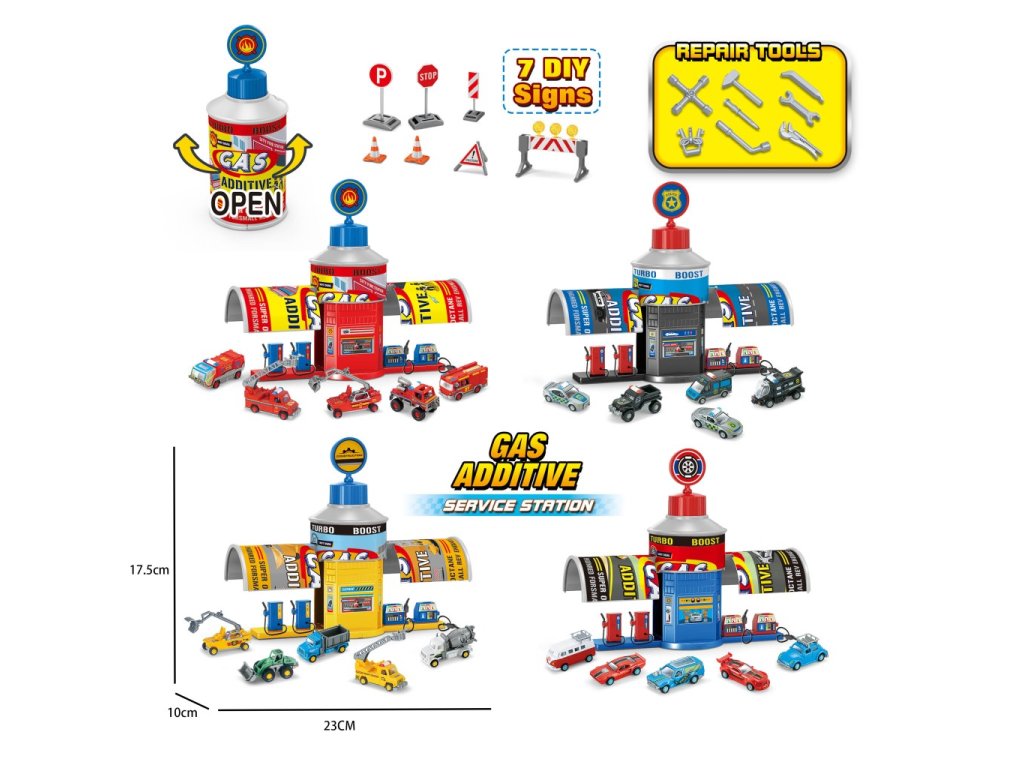 Tato benzínová pumpa je skvělou hračkou pro malé řidiče! Sada obsahuje autíčko, dopravní značky a další doplňky, které přidávají hře realistické detaily. Benzínová pumpa je vybavena stojany na palivo, hadicemi a jinými autentickými prvky, které napodobují skutečnou pumpu. Děti si mohou užívat tankování auta, dodržování pravidel silničního provozu a vymýšlení příběhů kolem autíček. Skvělý dárek pro malé fanoušky aut a zábavných her s reálnými detaily!
