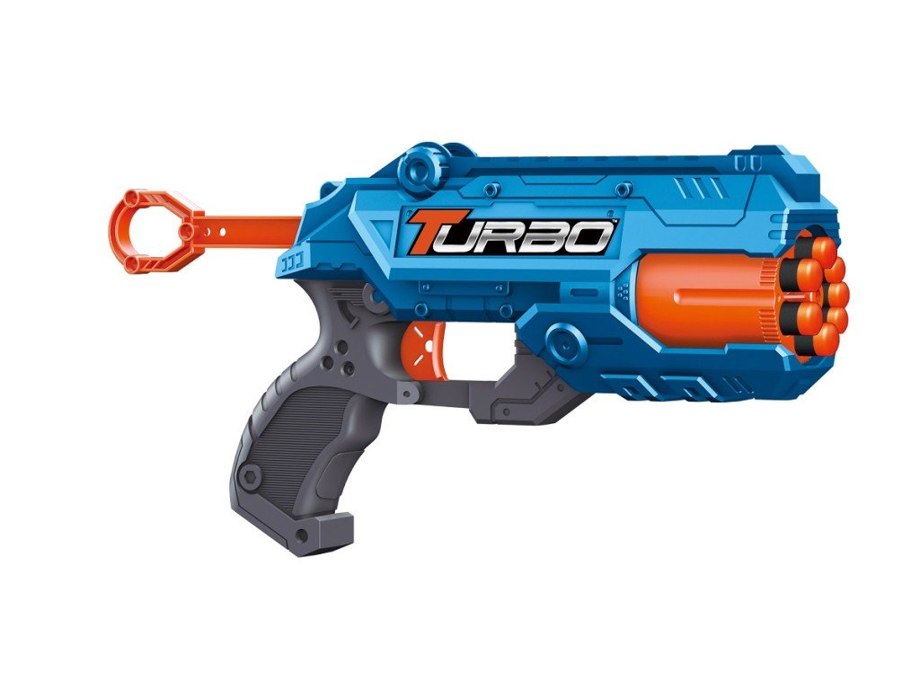 Blaster Turbo s dostřelem 8–15 m – připrav se na akční zábavu! Tento blaster nabízí skvělý dostřel a vysokou přesnost. Balení obsahuje pistoli a 8 ks nábojů vyrobených z měkkého pěnového materiálu, s kulatou hlavou pro bezpečné střílení. Náboje jsou recyklovatelné a šetrné k životnímu prostředí, ideální pro dlouhé akční hry.