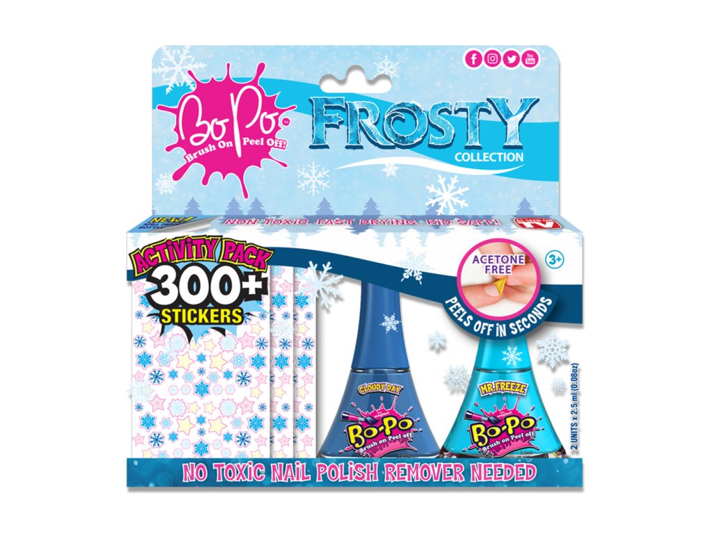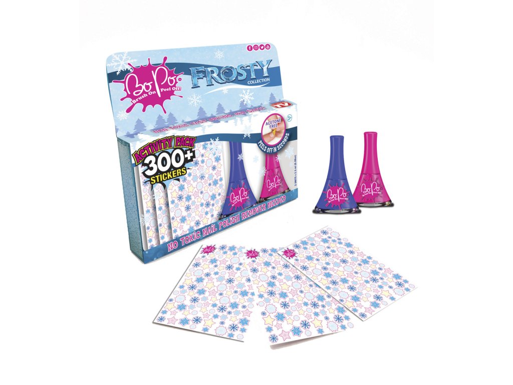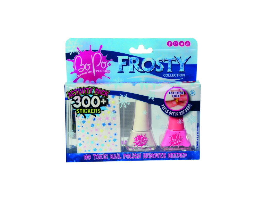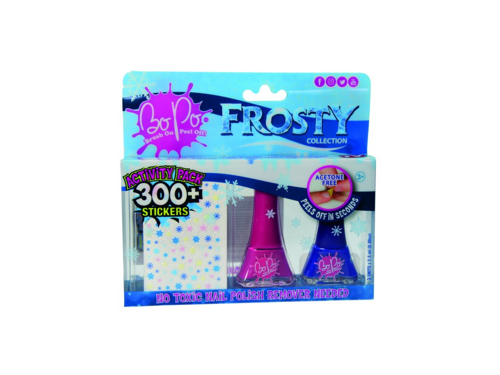 Revoluce ve světě manikúry. Již žádný odlakovač! Naneste lak, nechejte ho zaschnout a užívejte si krásné nehty. Chcete změnit styl? Chcete si užít další zářivou barvu? Jednoduše lak ze svého nehtu sloupněte a hned můžete lakovat znovu. Pozor. NOVINKA! Nyní si užijte Bo-Po laky s úžasnými vůněmi. Tyto laky jsou zdravotně nezávadné, šetrné k dětským nehtíkům a neobsahují acetylen. Lahvička je navržena tak, že se nevylije. Pro děti od 3 let.