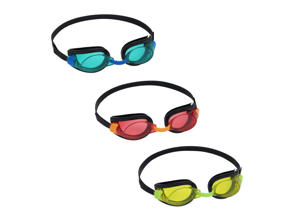 Moderní plavecké brýle s průhlednými bezpečnostními čočkami. Pohodlné tvarované košíčky na oči pro dokonalou těsnost. Upravitelný pásek pro bezpečné a pohodlné nošení. Různá barevná provedení. Pro děti od 7 let.