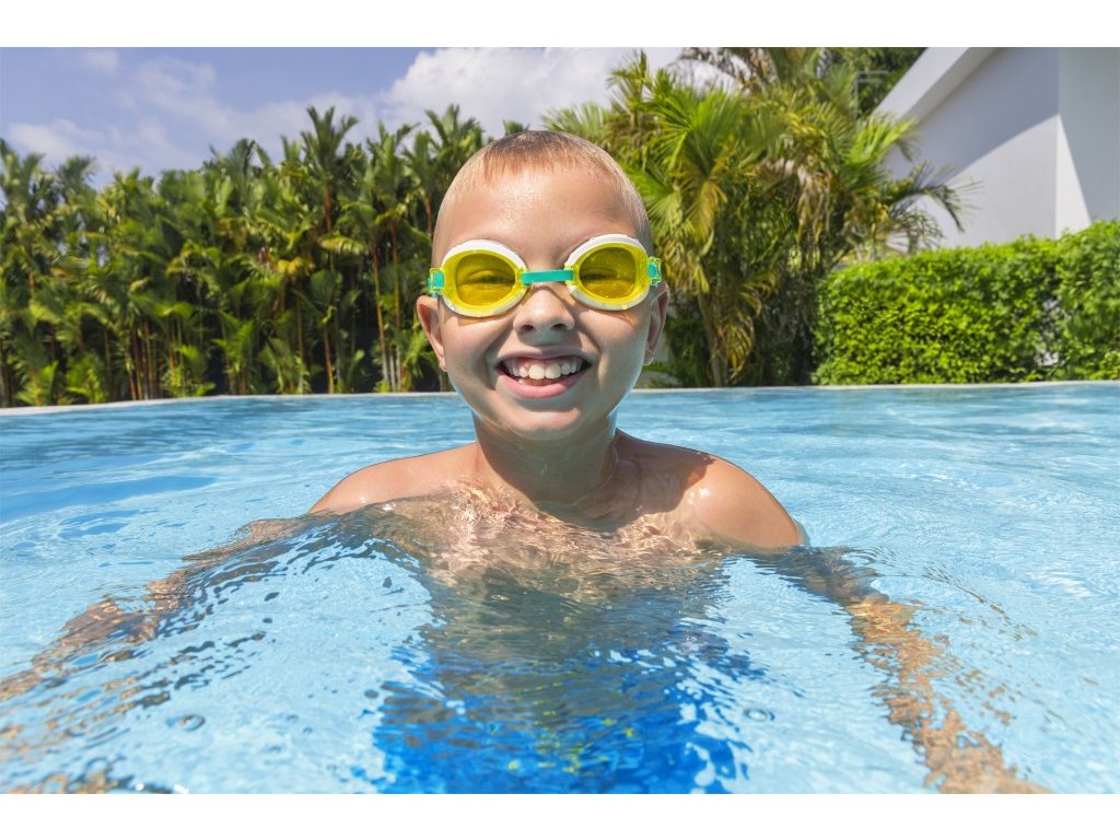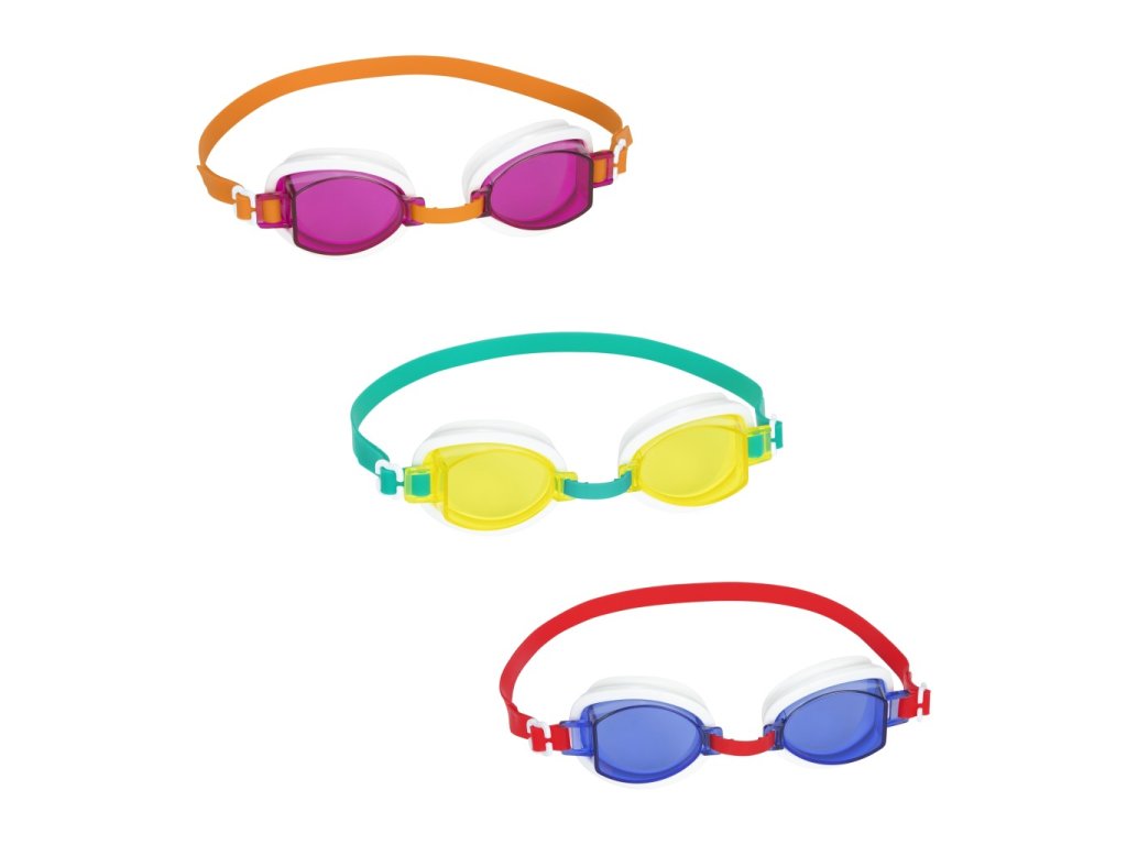 Moderní plavecké brýle s průhlednými bezpečnostními čočkami. Pohodlné tvarované košíčky na oči pro dokonalou těsnost. Upravitelný pásek pro bezpečné a pohodlné nošení. Různá barevná provedení. Pro děti od 7 let.