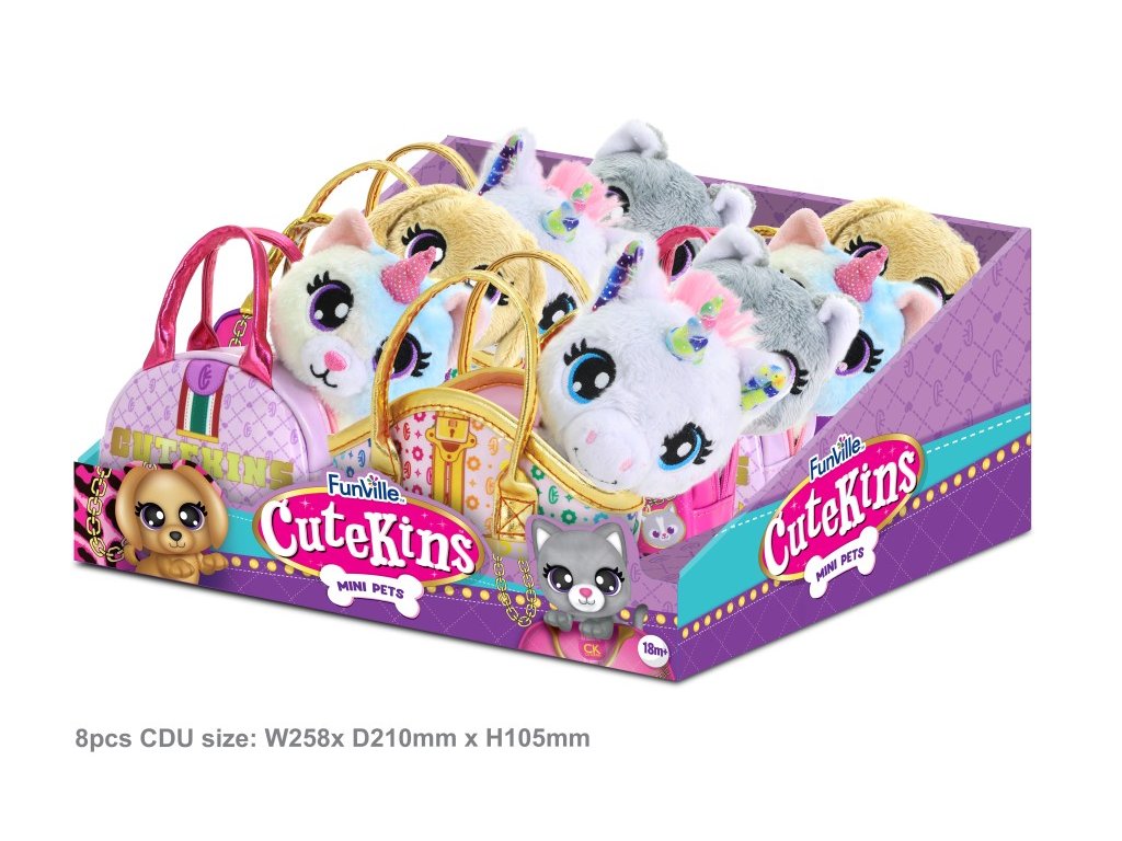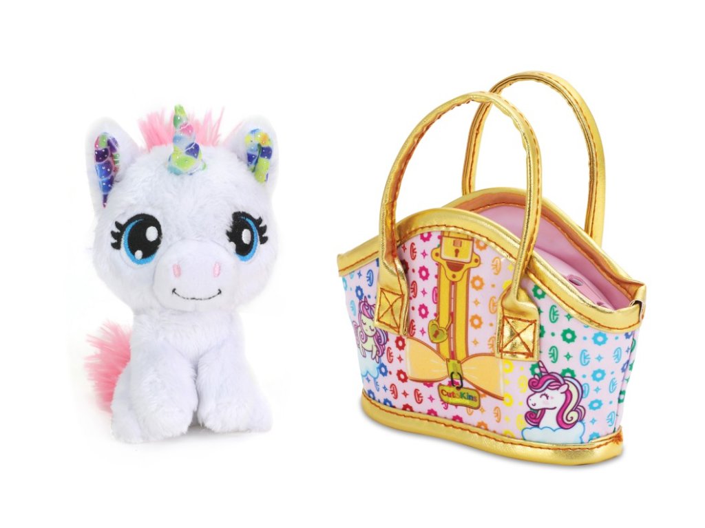 Plyšový mazlíček v taštičce se stane tvým oblíbeným kamarádem na cesty. Zvířátko je ve 4 designech: jednorožec, koťátko, štěňátko a koťátko jednorožec.