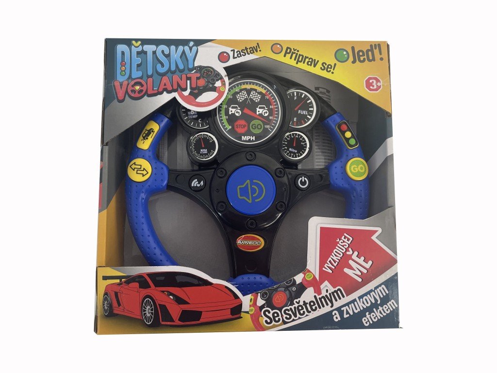 Dětský volant pro děti se zvukovými efekty a písničkami. Volant mluví český napr. slova: Zastav! Připrav se a jeď! Dvě vtipné originální české písničky.