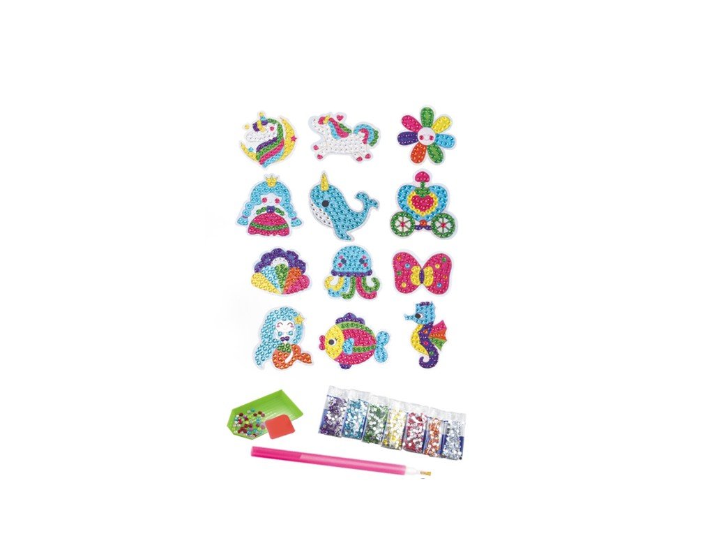 Ozdob si zápisník, deník, jmenovky na dárky a další…Diamantové tvoření: 1. Odloupnutím fólie, odkryješ na vybraném obrázku lepidlo 2. Ponoř pero do vosku 3. Nabírej drahokamy perem 4. Umísti drahokamy na plochu lepidla.