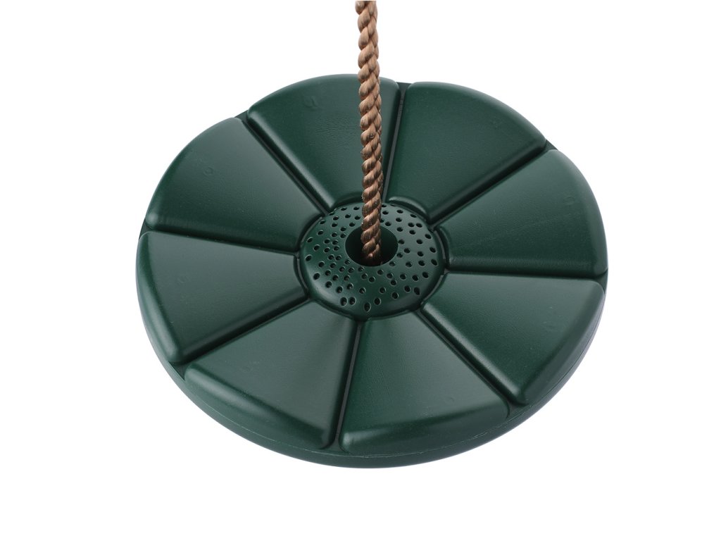 Houpací disk o přůměru 28 cm. Materiál plast a lano ( o délce 1,8 m.). Maximální nosnost je 80kg. Vhodné pro děti od 3 let.