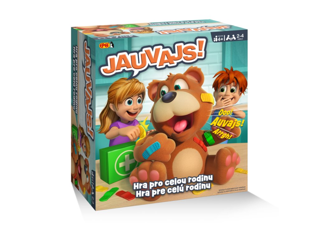 Hra JAUVAJS! je zábavná a napínavá společenská hra vhodná pro děti od 4 let, která dokáže zabavit 2 až 4 hráče najednou. Hlavním prvkem hry je plastová figurka medvěda, která je pokrytá barevnými náplastmi v různých barvách – zelené, modré, žluté, oranžové a červené. Hráči se snaží opatrně strhávat tyto náplasti z medvěda, přičemž musí být velmi opatrní, aby medvěd nezakřičel. Každá náplast je pevně přichycená, takže tahání vyžaduje jemný a precizní přístup.