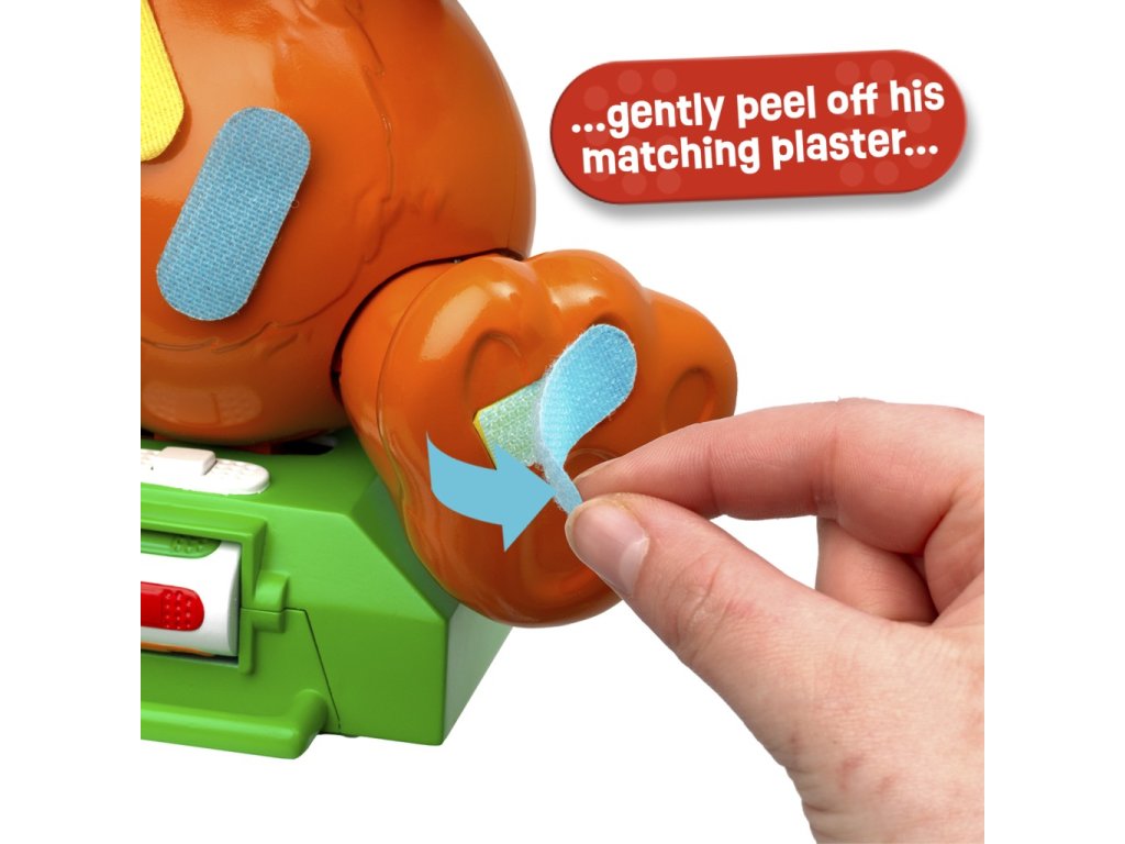 Medvěd je umístěn na zeleném podstavci, který obsahuje mechanismus na otáčení. Hráči otáčením tohoto mechanismu určují, kterou náplast budou muset odstraňovat. Při příliš silném trhnutí medvěd vydá hlasitý zvukový projev, který simuluje zakřičení, což přináší do hry napětí a zábavu. Hra tak rozvíjí dovednosti trpělivosti, jemné motoriky a soustředění.