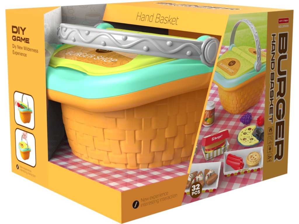 Tento roztomilý piknikový košík je ideální pro všechny malé gurmány, kteří si rádi hrají na pořádání pikniků! Košík obsahuje 32 různých doplňků, jako je ovoce, zelenina, pizza, burgery a další lahůdky, které dětem umožní připravit si vlastní piknik.