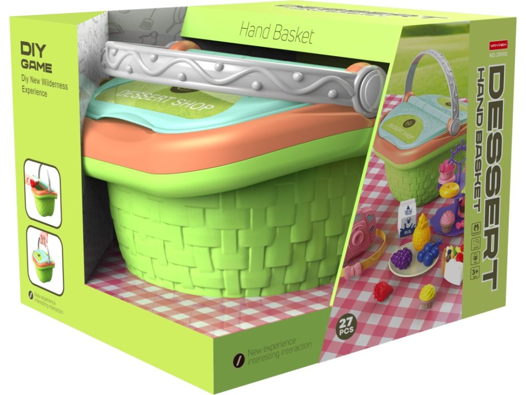 Tento roztomilý piknikový košík je ideální pro všechny malé gurmány! Košík obsahuje 27 různých doplňků, jako je ovoce, dezerty, láhev a talířek, které dětem umožní připravit si vlastní piknik. Perfektní pro rozvoj kreativního hraní, kdy si děti mohou představovat, že pořádají piknik s rodinou nebo kamarády. Tento set je skvělý pro zábavu doma i venku a pomáhá dětem rozvíjet sociální dovednosti a představivost.