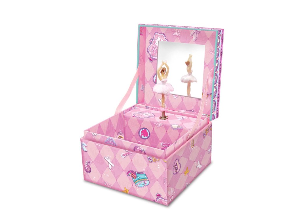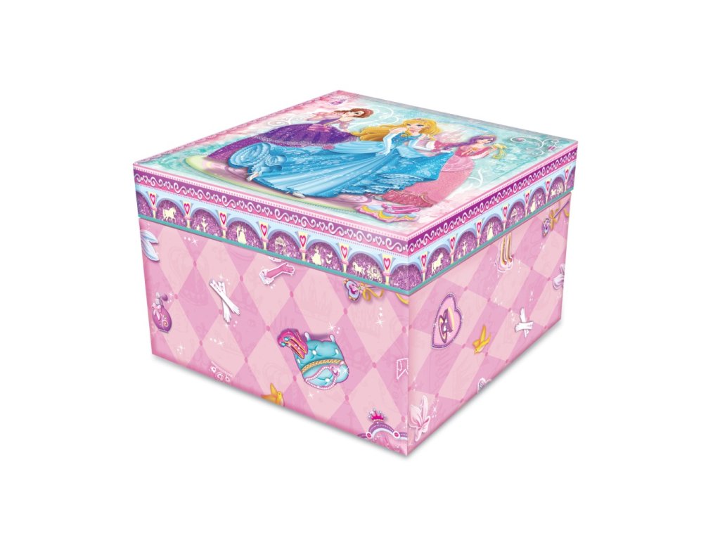 Uložte si své poklady do šperkovnice s krásným designem. Po natažení a otevření hraje šperkovnice hudbu. Skvělý doplněk pro malé princezny a parádnice. Výrobek je z pevného, odolného papíru s hladkou povrchovou úpravou. Vhodné pro děti od 6ti let.
