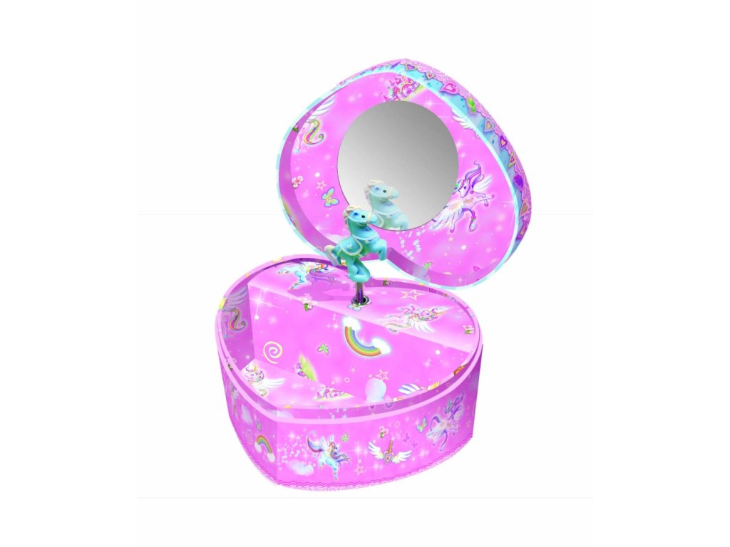 Uložte si své poklady do šperkovnice s krásným designem. Po natažení a otevření hraje šperkovnice hudbu. Skvělý doplněk pro malé princezny a parádnice. Výrobek je z pevného, odolného papíru s hladkou povrchovou úpravou. Vhodné pro děti od 6ti let.