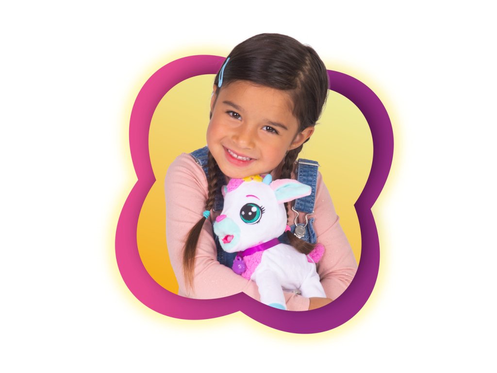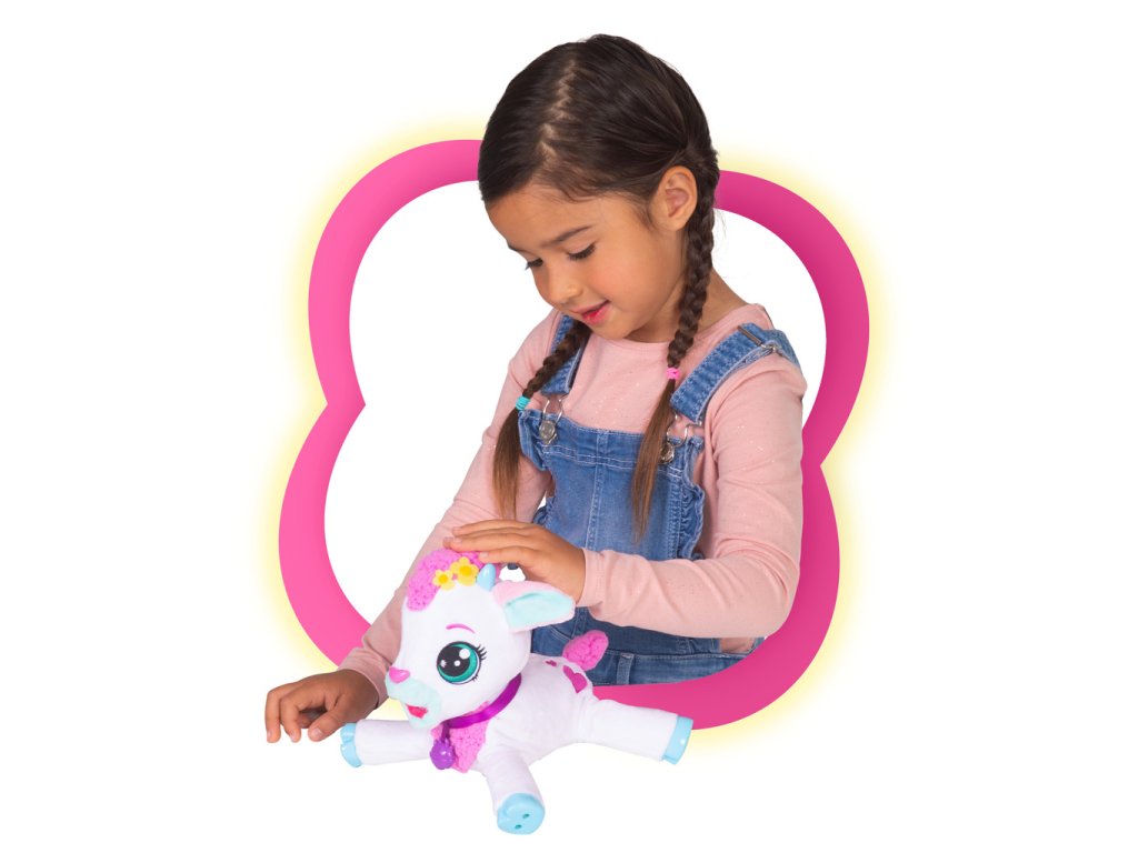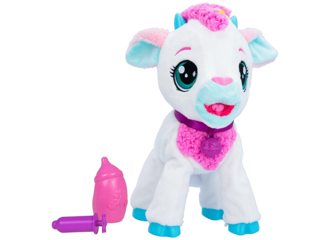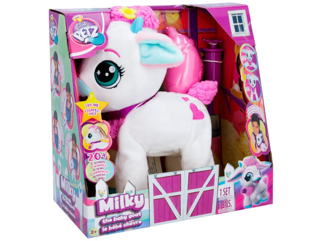 Interaktivní kůzlátko Milky, Milky vydává až 20 různých zvuků. Hezky se o ní postarej, hlaď ji po hlavě, naočkuj ji, nakrm ji. Ona se postvaví na všechny čtyři. Balení obsahuje: 1 plyšáka, 1 lahvičku, 1 injekci, 1 letáček, 1 návod. Výrobek vyžaduje 3 AG13 baterie, které jsou součástí výrobku. Výrobek je vhodný pro děti od 2 let.