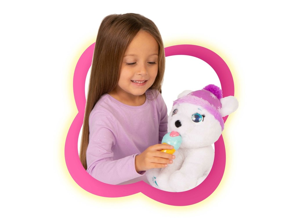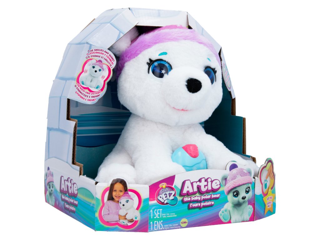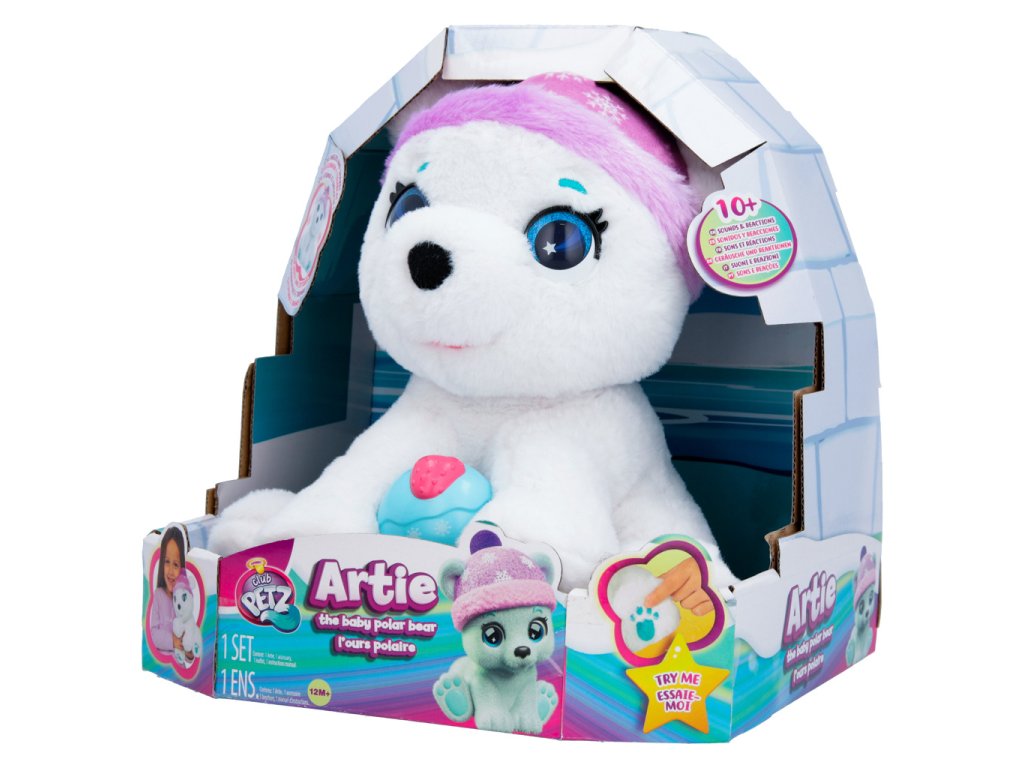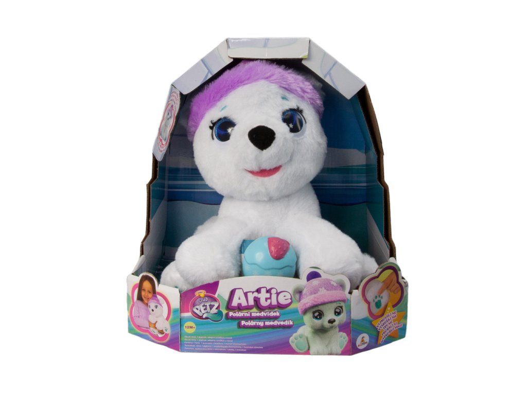 Interaktivní polární medvěd Artie má více jak 10 různých zvuků a reakcí. Umí se třást a kýchat. Zkus ho objemout a on se přestane třást. Zkus ho také nakrmit, jeho oblíbenou zmrzlinou. Součástí balení je medvídek Artie, zmrzlina, letáček a návod. Výrobek vyžaduje 3× AA baterie, které jsou součástí balení.