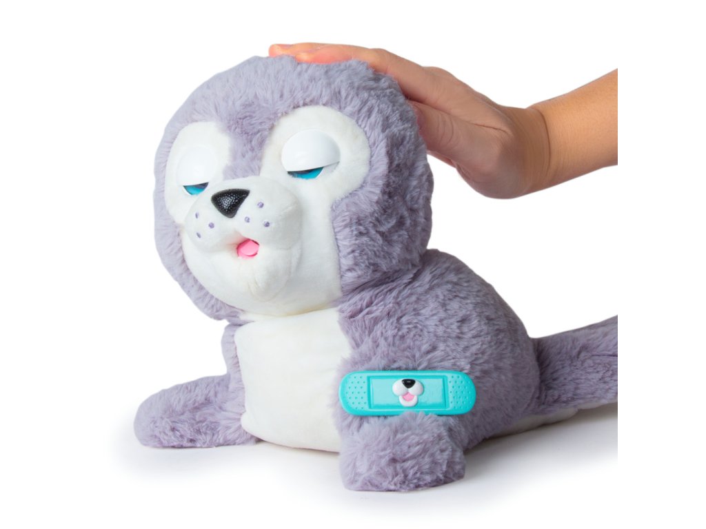 Interaktivní plyšový tuleň Silver potřebuje péči a pohlazení. Staň se zkušeným zvířecím záchranářem, ošetři jí rány a starej se o ni.