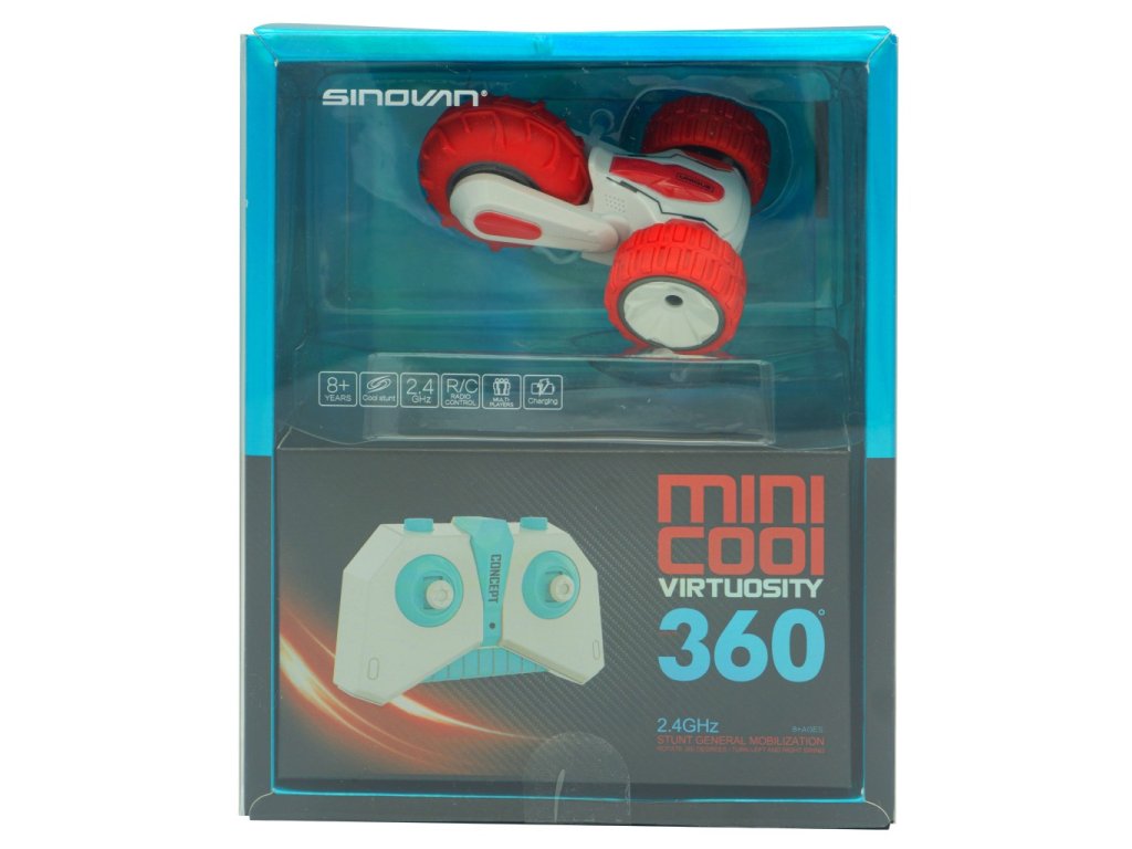 Kaskadérské mini auto na dálkové ovládání s radiovou frekvencí. Zažijte spoustu zábavy s úžasnými auty na ovládání, které Vás ohromí skvělými triky a rychlostí. Balení obsahuje autíčko s akumulátorovou baterií, USB kabel pro snadné nabíjení, dálkový ovladač na baterie s dosahem 12 m. Doba nabíjení je cca 15 min, doba hry 10 min. Vhodné na hladké a čisté povrchy. Funkce: jízda vpřed, couvání, zatáčení, točení na místě, přetáčení o 360 stupňů. Baterie: Auto 1× baterie 3,7V Li-ion (je obsahem balení, nabíjení usb kabelem, také součástí) a ovaldač 2× AAA 1,5V (nejsou součástí). Doporučený věk 8+.