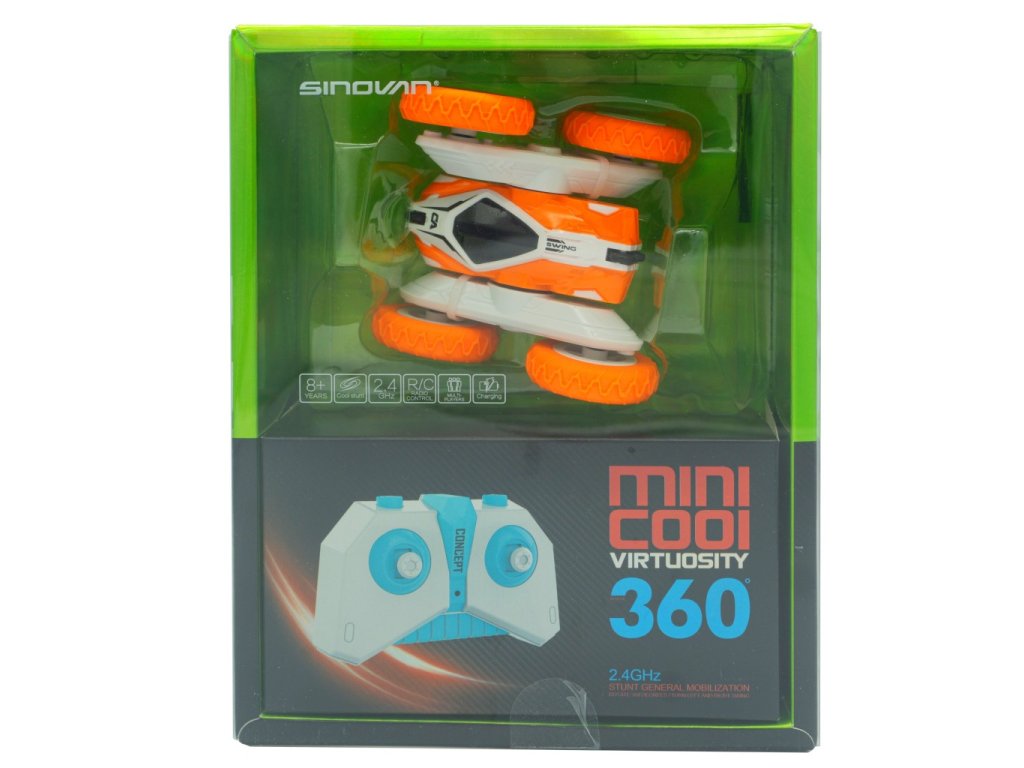 Kaskadérské mini auto na dálkové ovládání s radiovou frekvencí. Zažijte spoustu zábavy s úžasnými auty na ovládání, které Vás ohromí skvělými triky a rychlostí. Balení obsahuje autíčko s akumulátorovou baterií, USB kabel pro snadné nabíjení, dálkový ovladač na baterie s dosahem 12 m. Doba nabíjení je cca 15 min, doba hry 10 min. Vhodné na hladké a čisté povrchy. Funkce: jízda vpřed, couvání, zatáčení, točení na místě, přetáčení o 360 stupňů. Baterie: Auto 1× baterie 3,7V Li-ion (je obsahem balení, nabíjení usb kabelem, také součástí) a ovaldač 2× AAA 1,5V (nejsou součástí). Doporučený věk 8+.