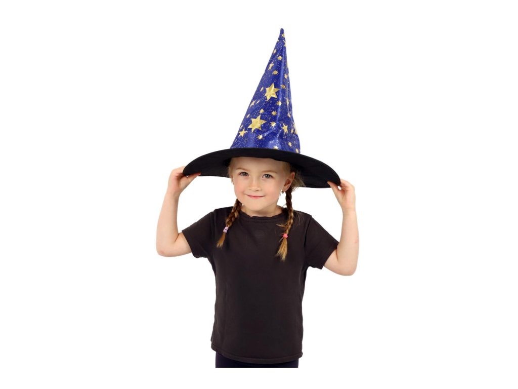 Dětský čarodějnický klobouk je inspirován světem kouzel a magie. Je modrý a zdobený zlatými hvězdami, které vzbuzují čarodějnický dojem. Děti si mohou hrát na kouzelníky a kouzelnice, zkoumat svět kouzel a vytvářet své vlastní příběhy plné dobrodružství a fantazie. Čarodějnické klobouky jsou oblíbenou součástí karnevalových a halloweenských kostýmů.