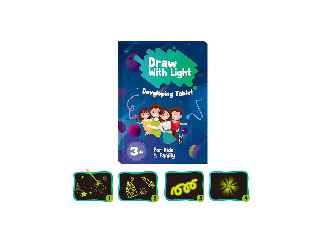 Ke kouzelnému a originálnímu malování světlem stačí jen málo: naše kreativní tabulka a svítící pero! Je už jen na kreativitě kreslíře, zda bude malovat jen dle své fantazie, nebo pro výsledný světelný obrázek použije přiložené šablonky.