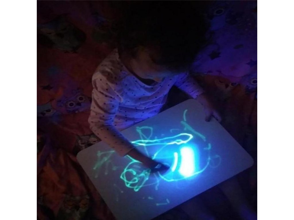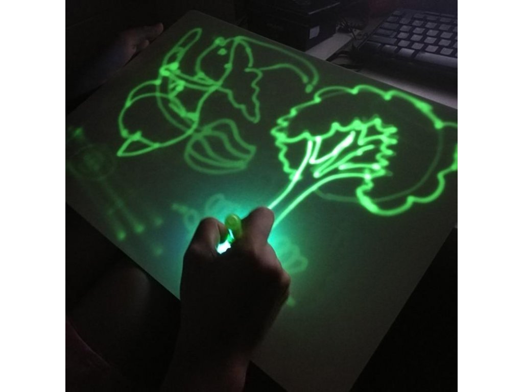 Kreslení světlem? Kouzlo? Jen trochu :-) Svítící tužkou nakresli na fosforovou podložku cokoliv, co tě napadne!