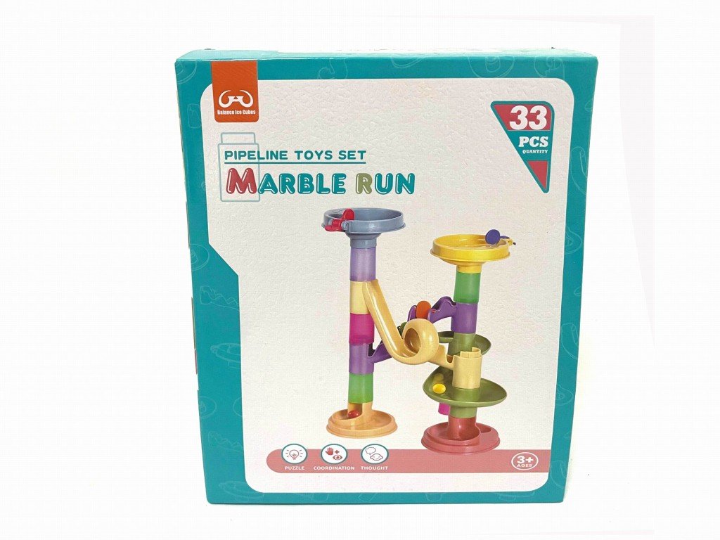 Zábavná kuličkodráha pro děti. Dráha se skládá ze 33 kousků. Výrobek je vhodný pro děti od 5 let.