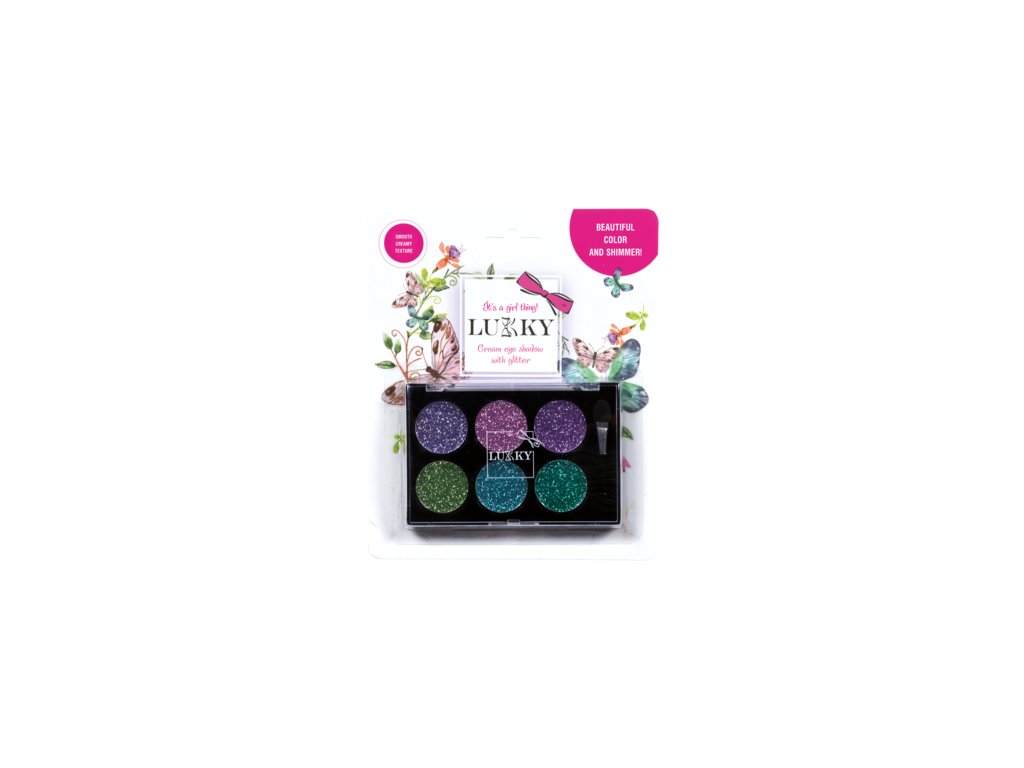 Krémové oční stíny Lukky se třpytkami a štětečkem v 6 různých odstínech. Vhodné pro děti od 3 let.