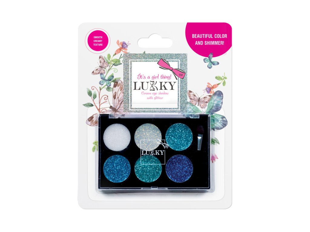 Krémové oční stíny Lukky se třpytkami a štětečkem v 6 různých odstínech. Vhodné pro děti od 3 let.