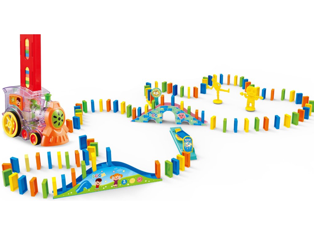 Tato mašinka s dominem je skvělá hračka pro děti, která kombinuje zábavu s rozvojem motorických dovedností! Mašinka, která se pohybuje, je ideální pro sestavení vlastní domino dráhy, kde děti mohou sledovat, jak dominové kostičky padají jedna po druhé. Hračka podporuje kreativitu, soustředění a logické myšlení. Produkt vyžaduje 2× AA baterie (nejsou součástí balení) pro pohyb mašinky. Vhodné pro děti od 3 let. Tato kombinace mašinky a dominového setu přinese spoustu zábavy a napětí!