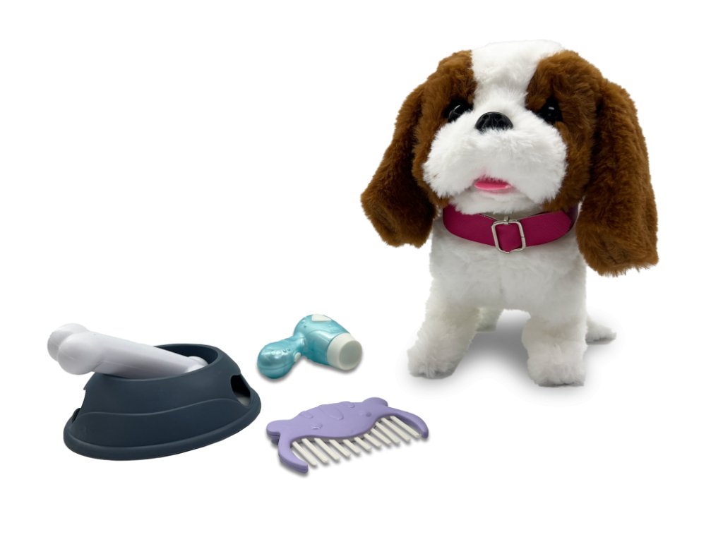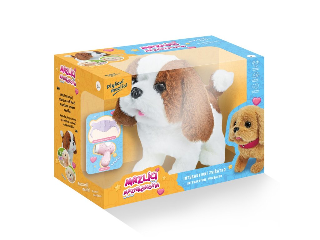 Mazlíci jsouí zvířátka, která pomáhají rozvíjet představivost a dětskou interakci. Mazli se se svým plyšovým mazlíkem, starej se a pečuj o něj! Balení obsahuje hnědobílého pejska Ťapku, hřebínek, mističku na jídlo a kostičku. Pejsek chodí, vydává zvuky a hýbe ocáskem. Představujeme interaktivní mazlíčky, kteří přinášejí dětem radost a zábavu při péči o jejich vlastní zvířecí přátele! Pejsek Ťapka je ideální pro rozvoj představivosti a dětské interakce. S těmito plyšovými mazlíčky si děti mohou užívat spoustu zábavy, starat se o ně a pečovat o jejich potřeby.