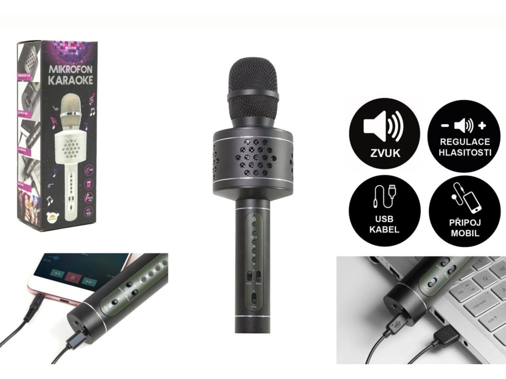 Mikrofon Karaoke Bluetooth černý na baterie s USB kabelem v krabici 10x28x8,5cm