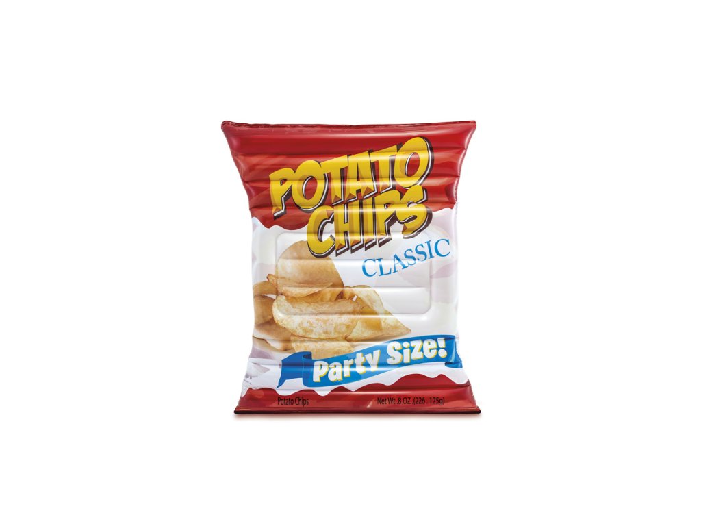 Nafukovací brambůrky Chips s realistickým potiskem o velikosti 1,78 m x 1,40 m. Opravná záplata přiložena. Vyrobeno z kvalitního vinylu.