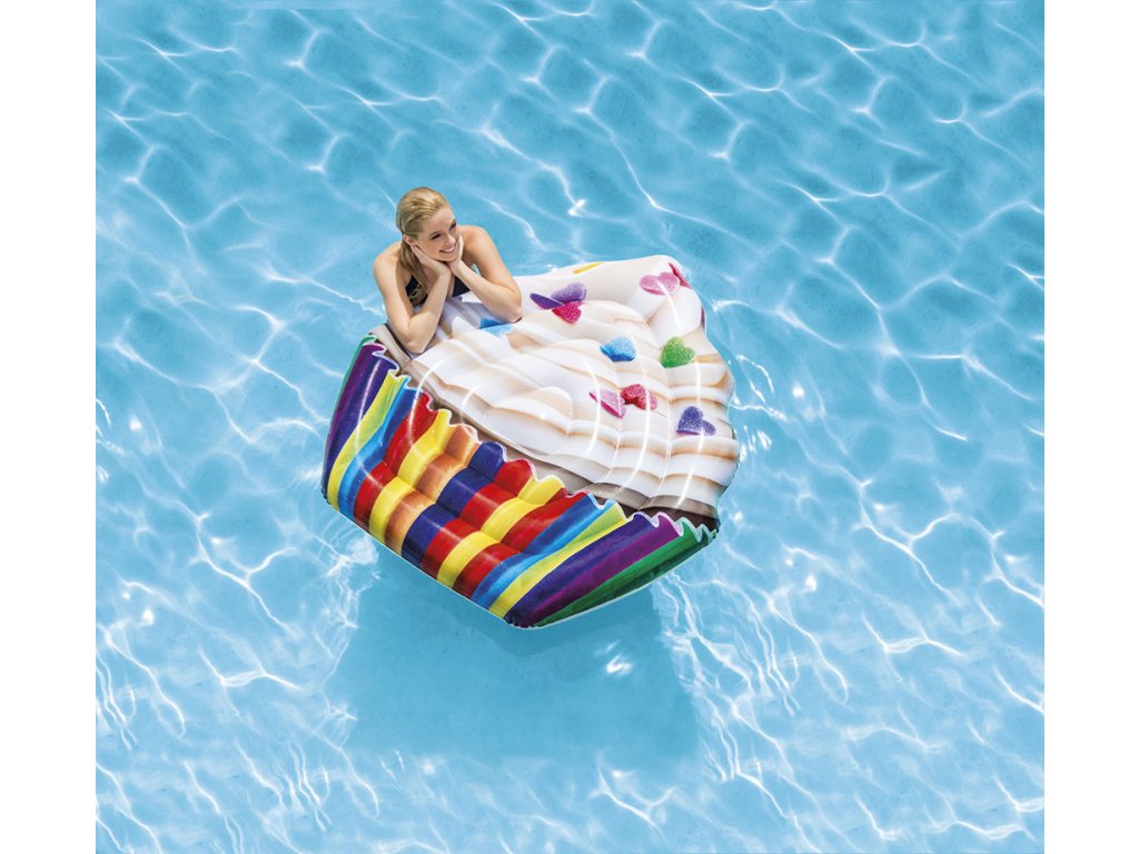 Nafukovací koláček cupcake s realistickým potiskem o velikosti 1,42 m x 1,35 m. Opravná záplata přiložena. Vyrobeno z kvalitního vinylu.
