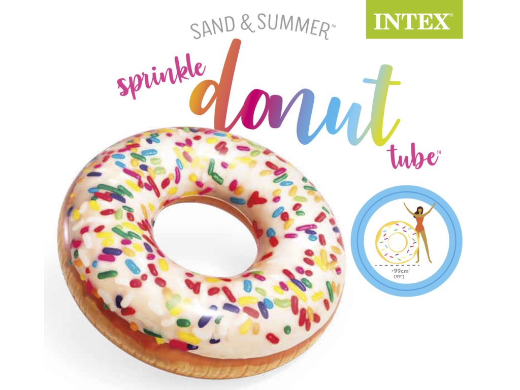 Nafukovací donut s realistickým potiskem o obvodu 1,14 m. Opravná záplata přiložena. Vyrobeno z kvalitního vinylu.