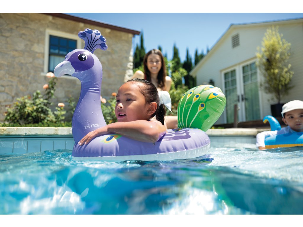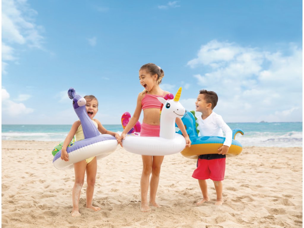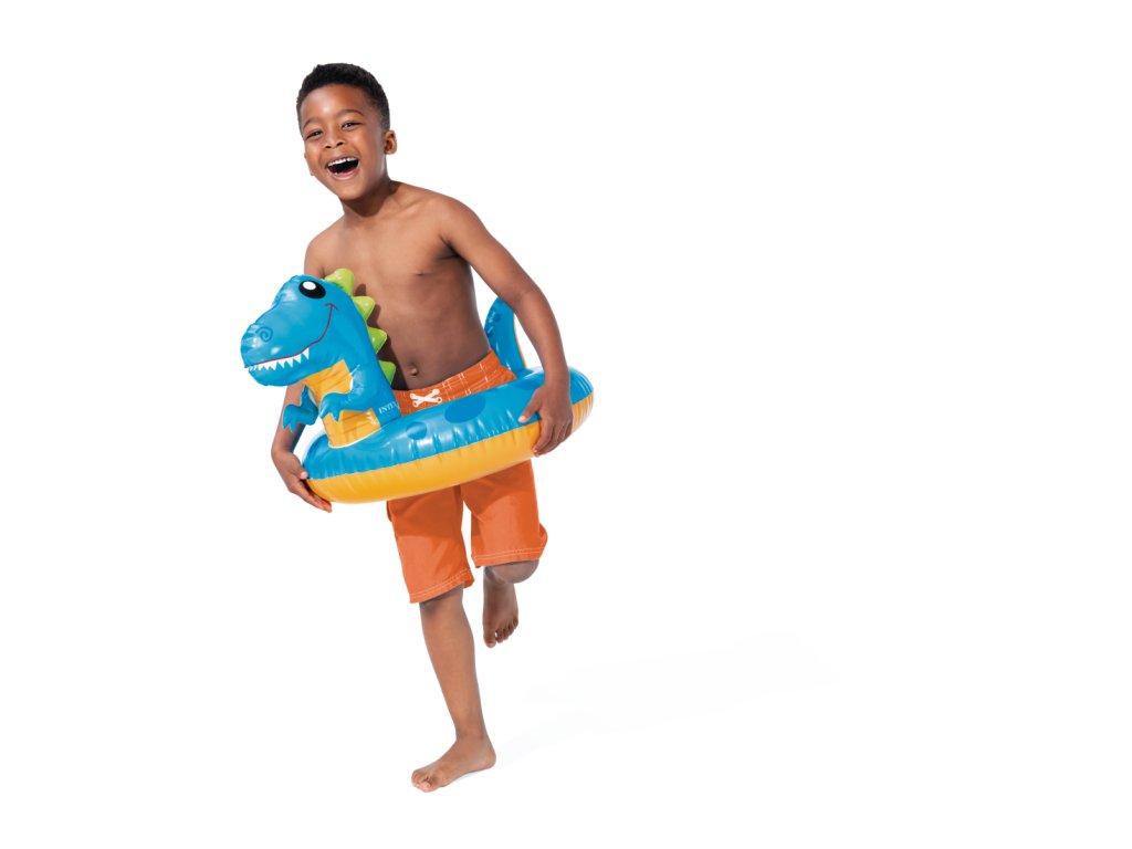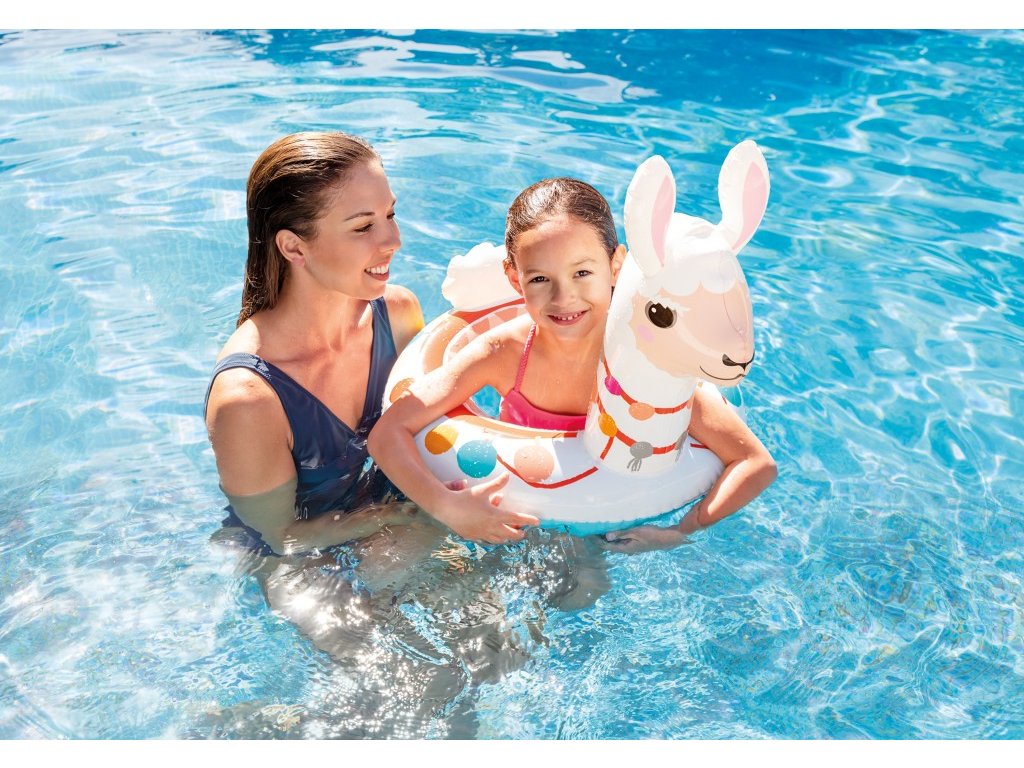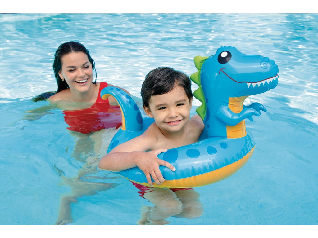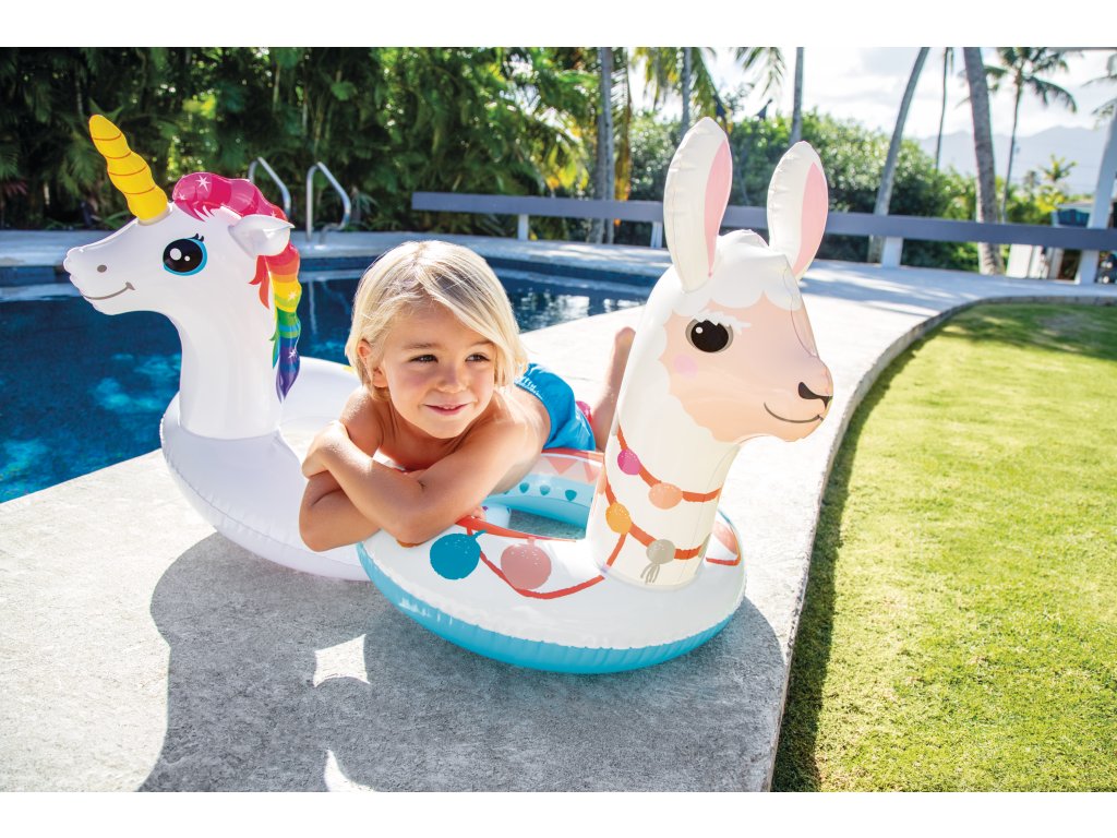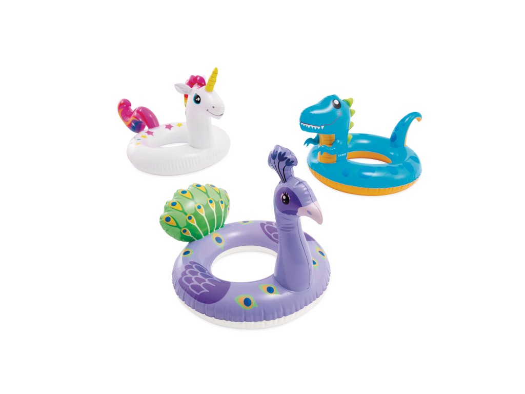 Nafukovací kruh v designu zvířátka o velikosti jednorožec 107×58 cm, lama 86×58cm a dinosaurus 81×58cm. Opravná záplata přiložena. Vyrobeno z kvalitního vinylu.