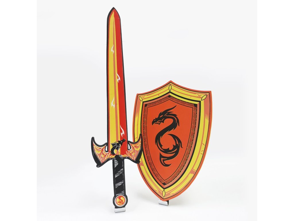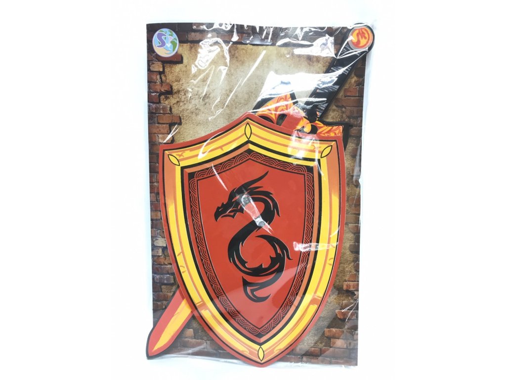 „Dětský pěnový meč a štít s motivem draka pro malého samuraje. Souprava je vyrobena z pěny a je velmi bezpečná. Vhodné jako doplněk ke karnevalovému kostýmu.“