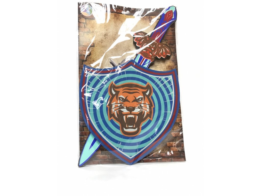 „Dětský pěnový meč a štít s motivem tygra pro malého samuraje. Souprava je vyrobena z pěny a je velmi bezpečná. Vhodné jako doplněk ke karnevalovému kostýmu.“