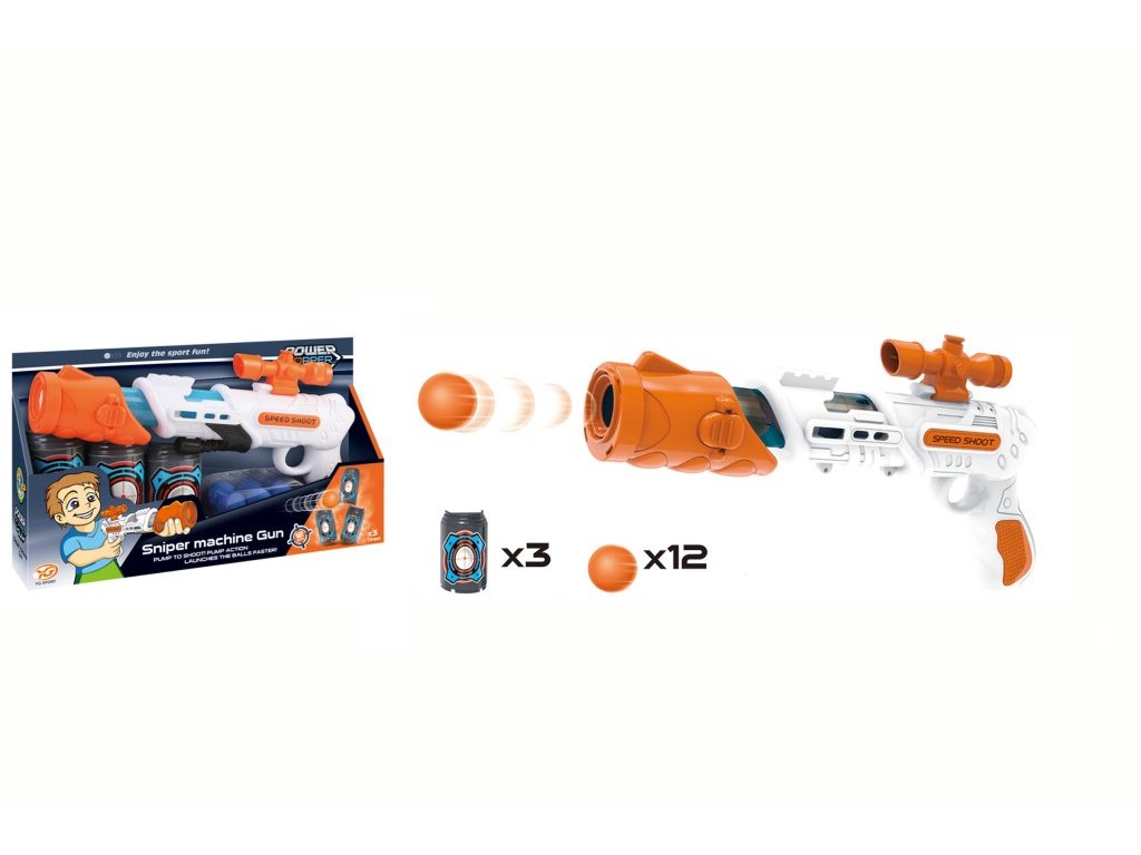 Užij si spoustu zábavy s touto pistolí, která odpaluje pěnové míčky rychleji! Skvělá hračka pro soutěživé chvíle a rozvíjení zručnosti.