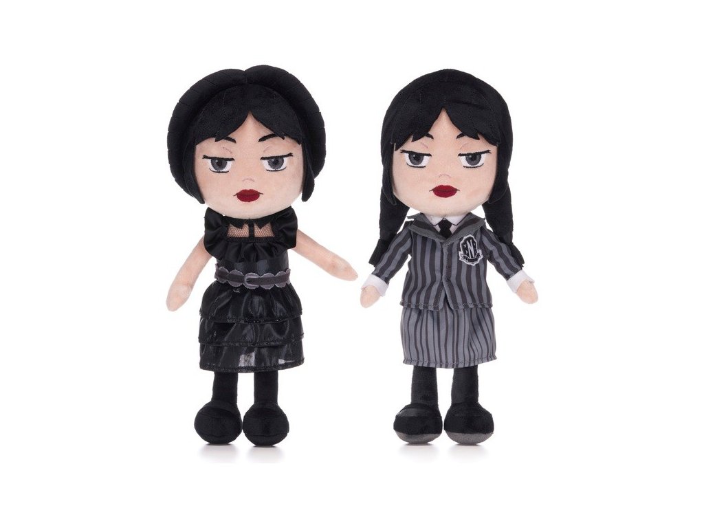 Jak je vidět v oblíbeném televizním seriálu, tyto 32cm plyšové panenky Wednesday Addams představují postavu ve dvou jejích ikonických oblecích. Vynikajících detailů si všimnete jak na panence Wednesday v černé a šedé školní uniformě Nevermore, tak na panence v jejích ikonických černých šatech, které měla na sobě v Nevermore Rave’N Dance.Vyrobeno ze super měkkého plyšového materiálu.