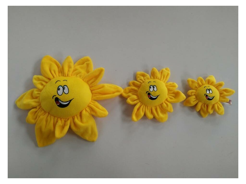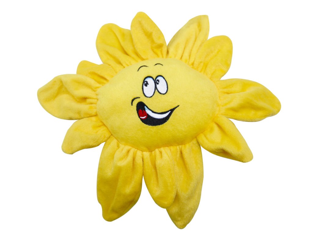 Plyšové usměvavé sluníčko o velikosti 15 cm. Vyrobeno z jemné plyše.