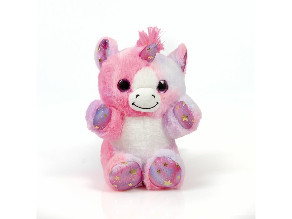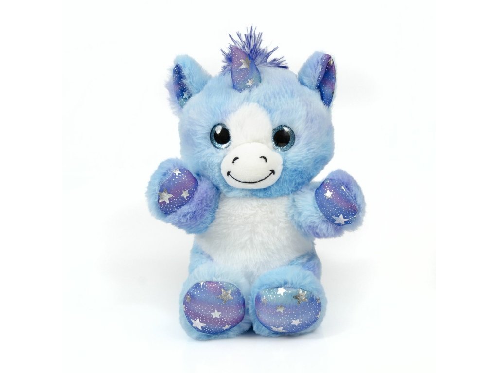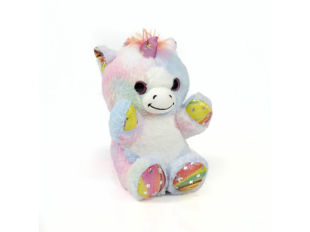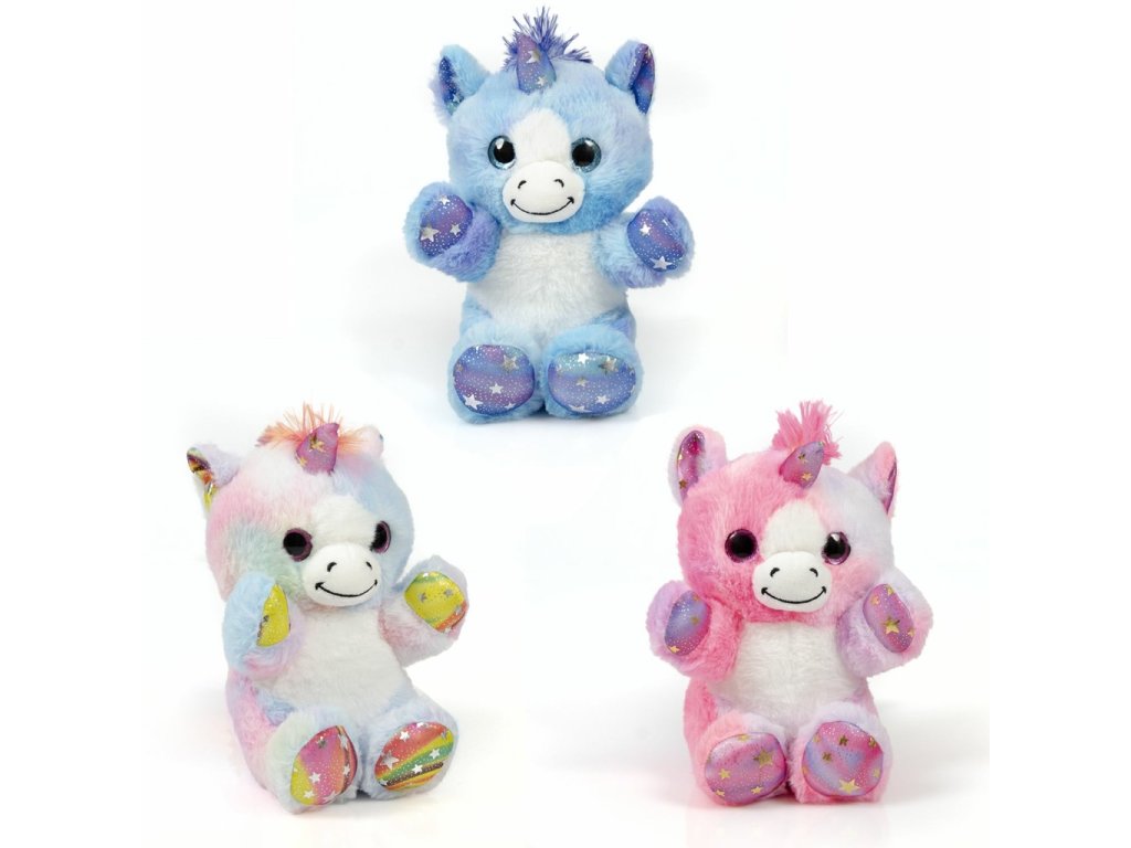 Plyšový jednorožec s hvědičkami 22 cm – ve třech barevných provedeních růžová, duhová a modrá.