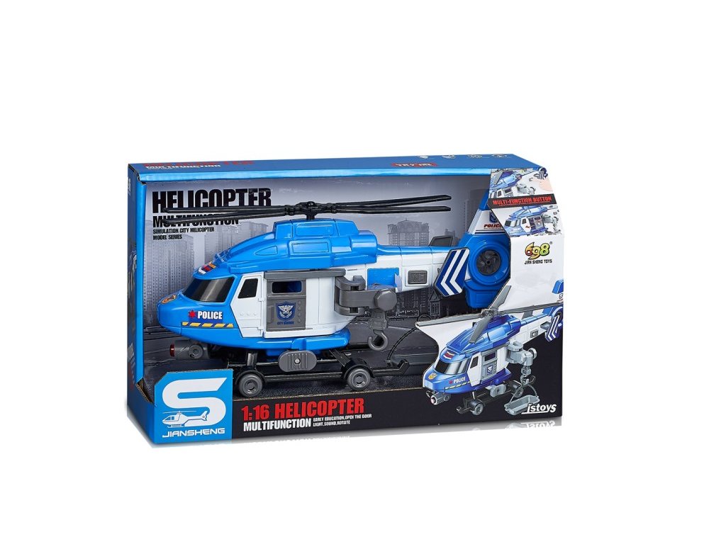 Baterie 3xAG13 jsou součástí balení, takže helikoptéra je připravena k okamžitému použití. Skvělý doplněk pro malé policisty, kteří si rádi hrají na záchranné a bezpečnostní mise.