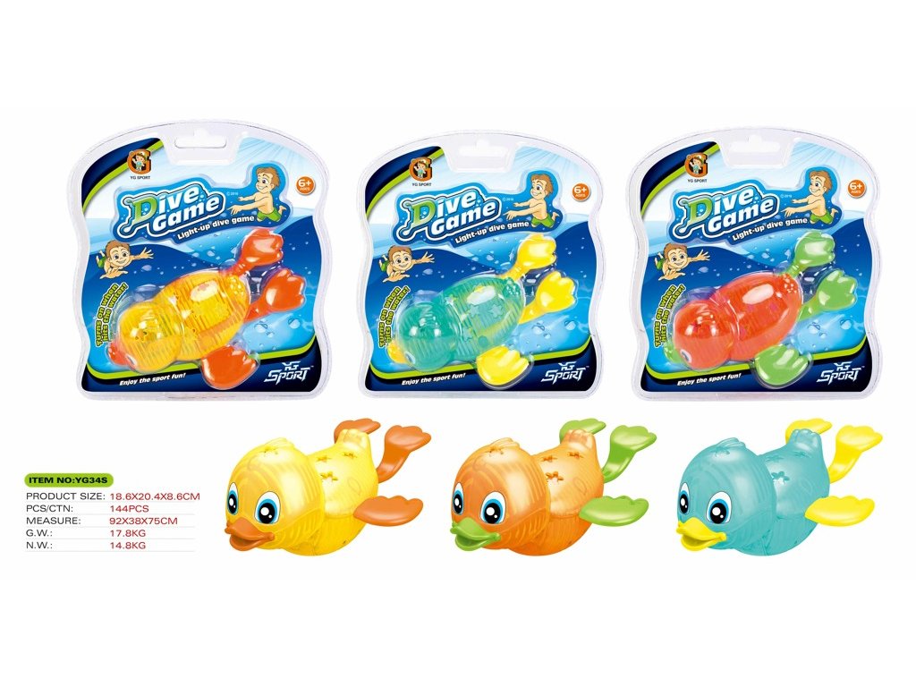 Hoď kačera do vody, potápěj se pro ním a zlepšuj se v plavání. Kačer se rozsvítí při kontaktu s vodou. Assort 3 barev.